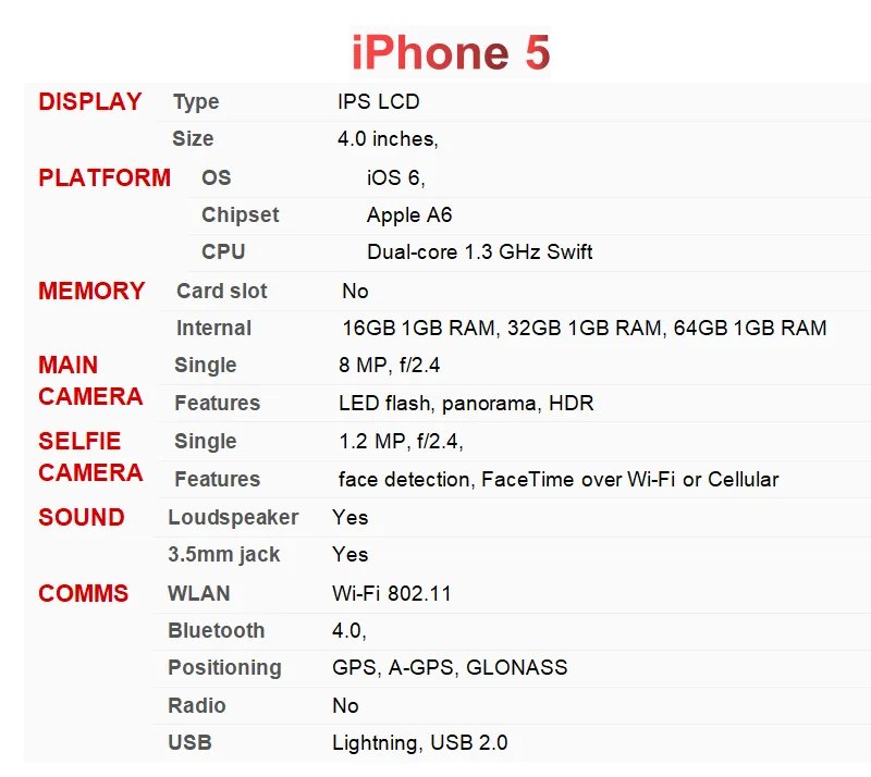 Apple iPhone 5 / iPhone 5S 16GB 32GB 64GB ROM 4.0