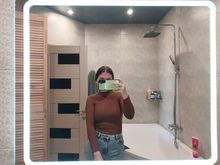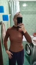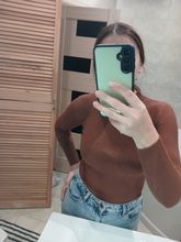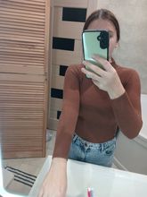 колір відрізняється, не шоколад як на фото, а ближче до коліра цеглини. я ношу розмір м , краще би підійшов на с , рукава закороткі. з монетами за 110 грн влаштовує , по повній вартості ні. до тіла приємний, не парить