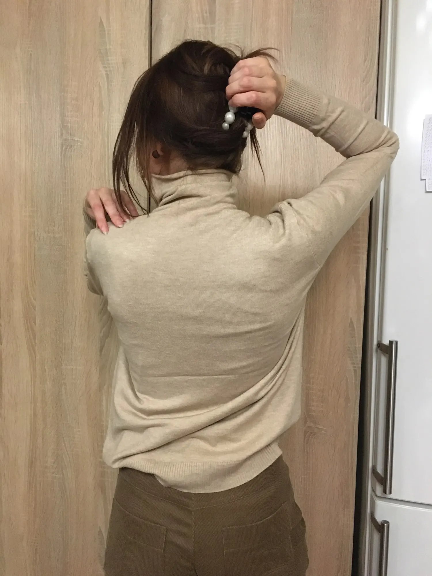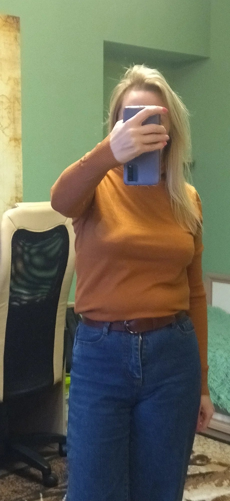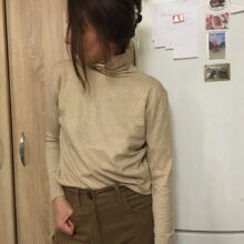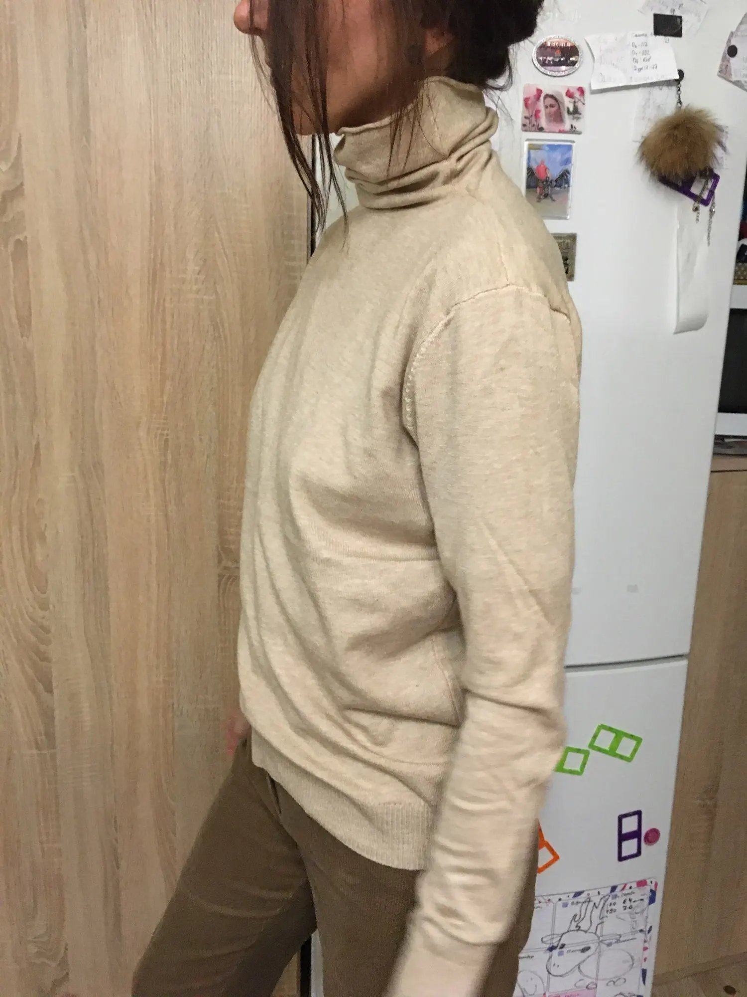 Very cute turtleneck. The color of coffee, but in reality it is the color of caramel. But I still liked the color.