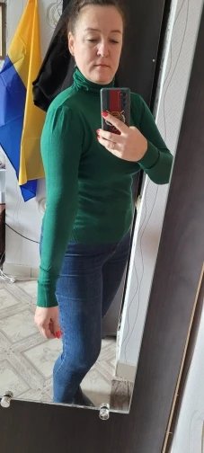 I took rosmir KHL. I'm Wearing C-m. I took such a rozmir for the sleeves of the Buli dovshi and the jacket herself did not lie down to the Tyle. Material juge age. Bila kofta trohi I will need to wear a little bit of a little about tilesolor. The neck does not press and stretch (you can slightly push into the same with a makiyazhy). The thread is dull, the seam is normal. Shipping is not a Bula dovoy