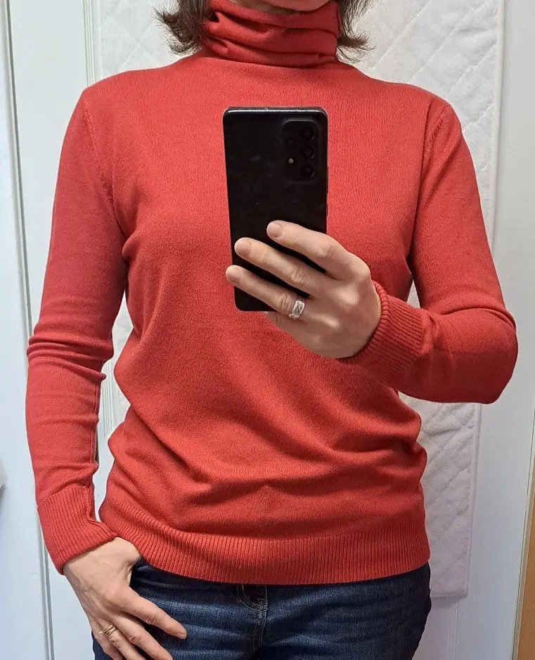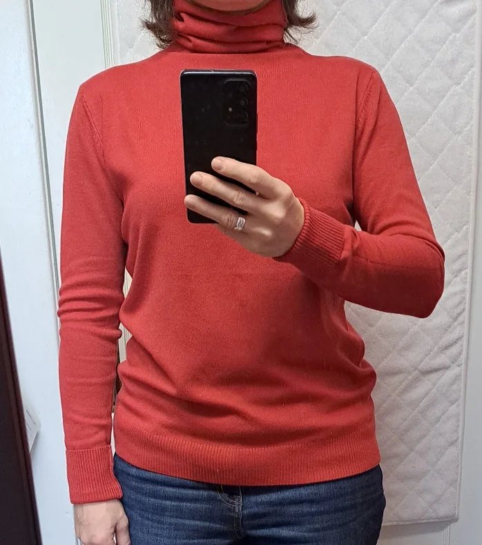 This is not the first time I have taken a golfer. The recent delivery is glad-11 days. Pleasant to the body, on the OG 100 cm (48 P) fits the figure, if you want to be as a sweater, freer-take a larger size. From the bag on the first golf, there were pellets, but the pill machine helped)) the color is actually something between my photo and the store's photo.