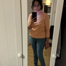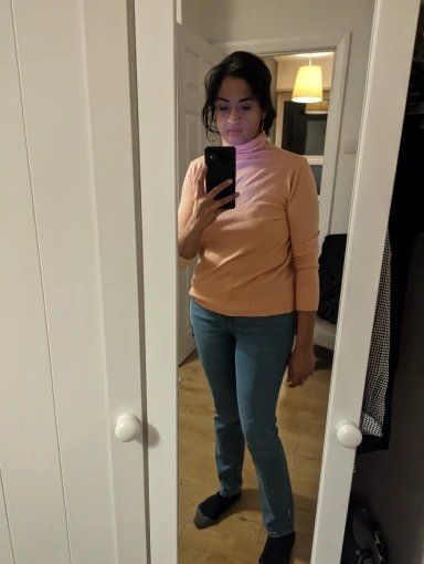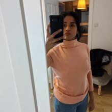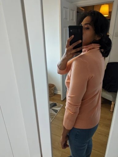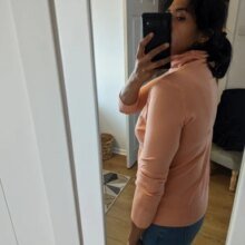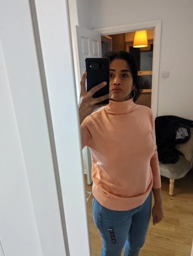 Lovely soft light top which can be worn on its own in spring autumn time or as a layer in colder weather. The fabric is really soft and comfortable. A little tricky to know if there is a front or back to the item - I think not Lovely peachy pink colour. Fits well. Long top and long sleeves. Lovely for layering. Recommend