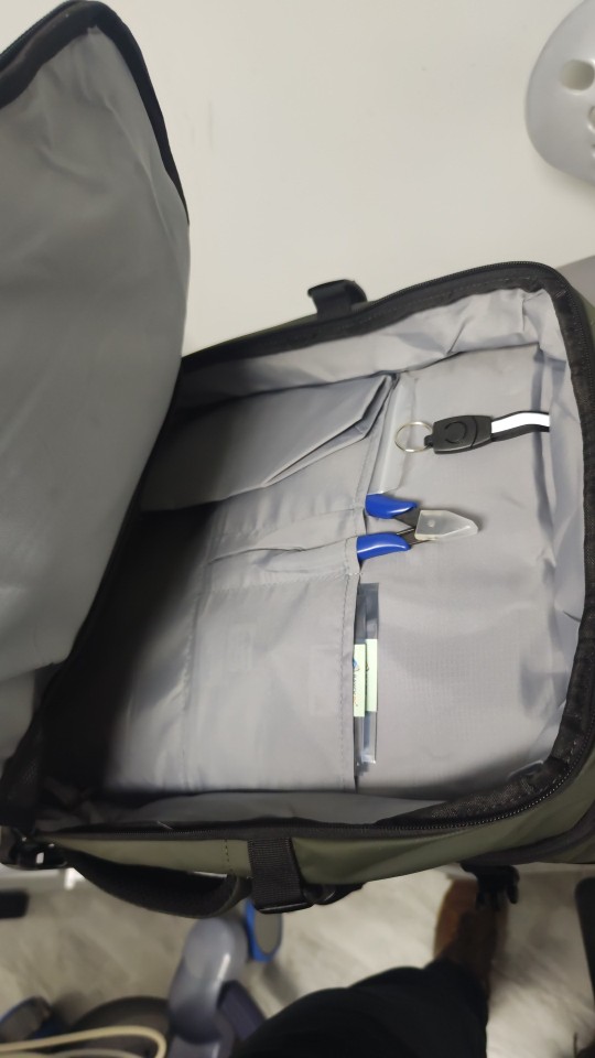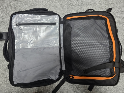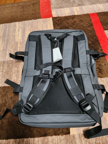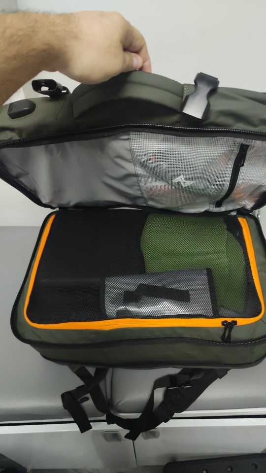 Me encantó, la parte exterior es impermeable y material resistente, los espacios enormes, excelente mochila de viaje.