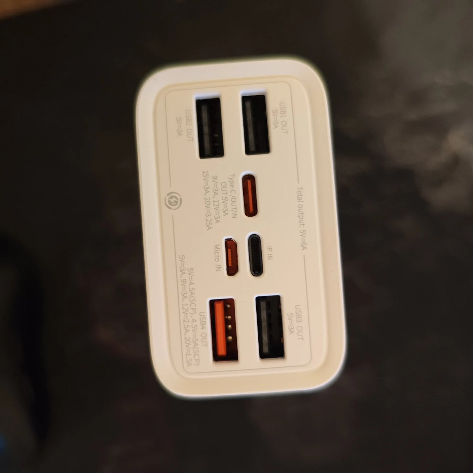 Все отлично, соответствует описанию, работает и заряжает Макбук и большой фотоаппарат Качественный провод в комплекте Из недостатков - собирает отпечатки пальцев, особенно видно на глянцевых торцах, они же будут быстро царапаться. Немного отличается сторона с портами подключения, нет выделения зоны входящих подключений по центру, но это всё мелочи..
