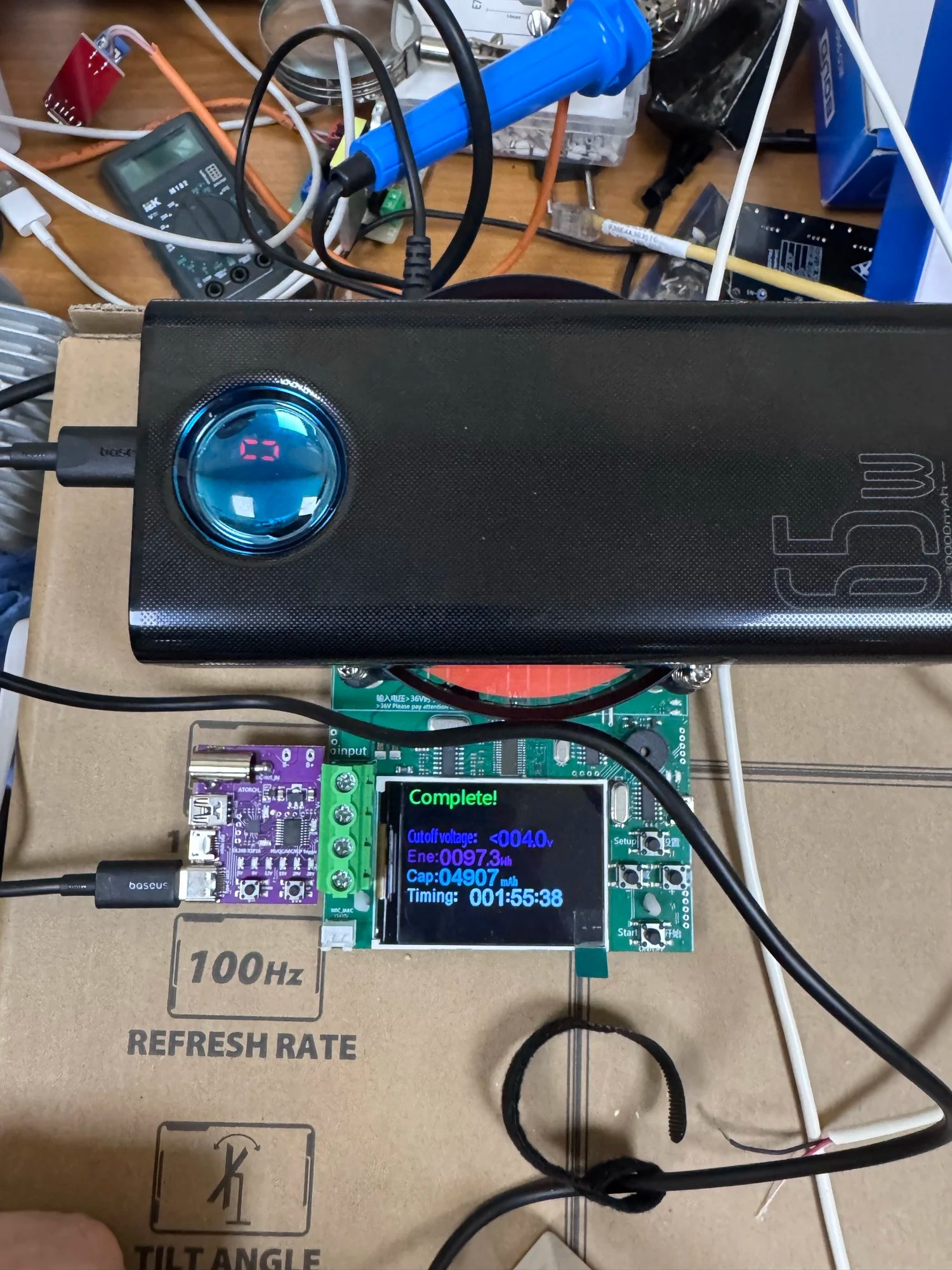 Описанию соответствует. заряжается от 65 Вт зарядки. моя больше 50вт не дает. отдает на 65Вт (20В 3А) 75% заряда, потом не более 40Вт(20В 2А) на 20В/3(2)А(65вт) отдал в сумме 97 Вт/ч что полностью соответствует завленным 111Вт/ч-25%на преобразование. на 20 Вт(9в/2А) отдал 104 Вт/ч