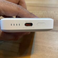 Charges my iPhone about 3 to 4 times. Fits perfectly under the camera. It is “slow” charging but a full charge in about 2.5h.