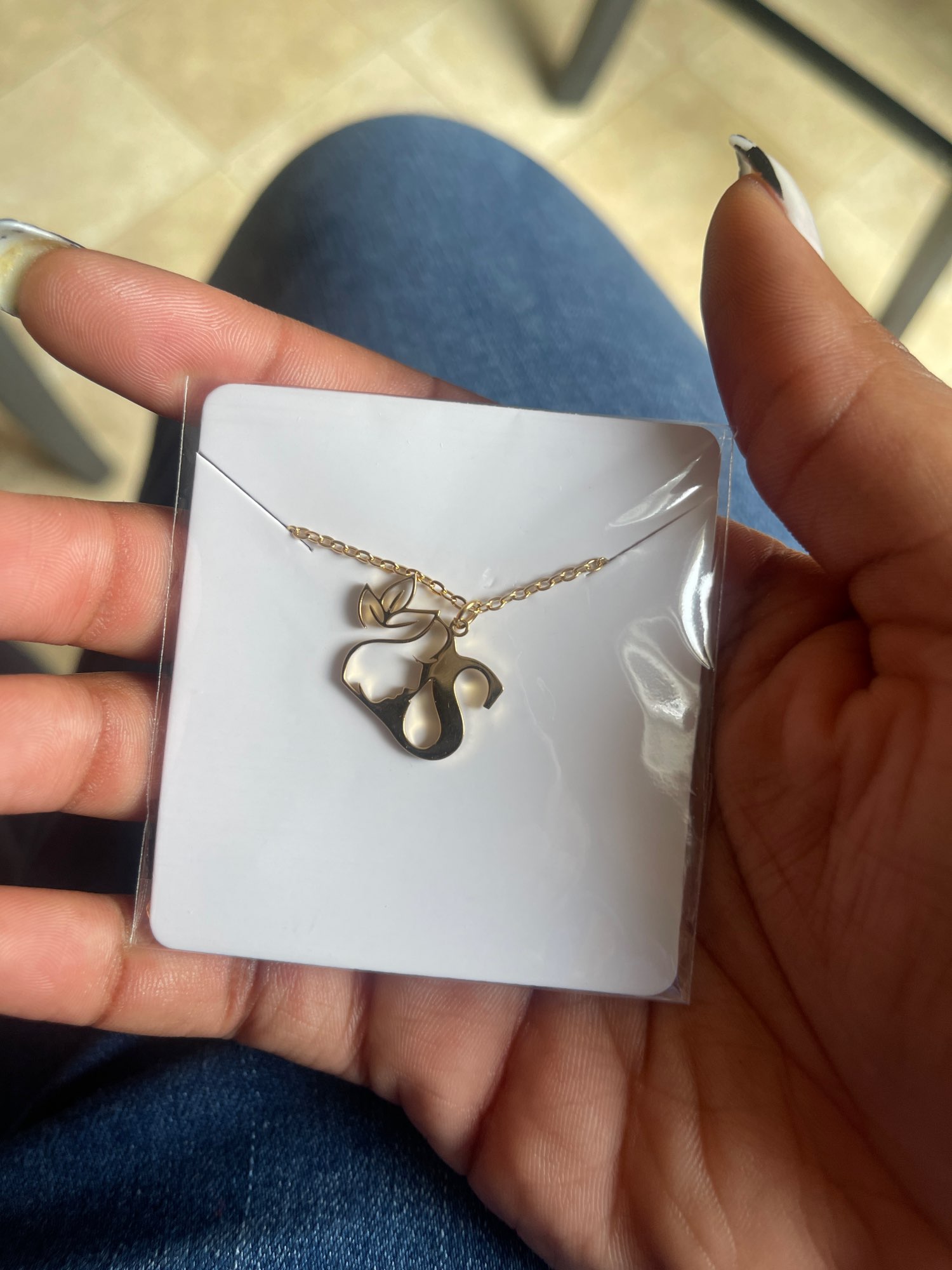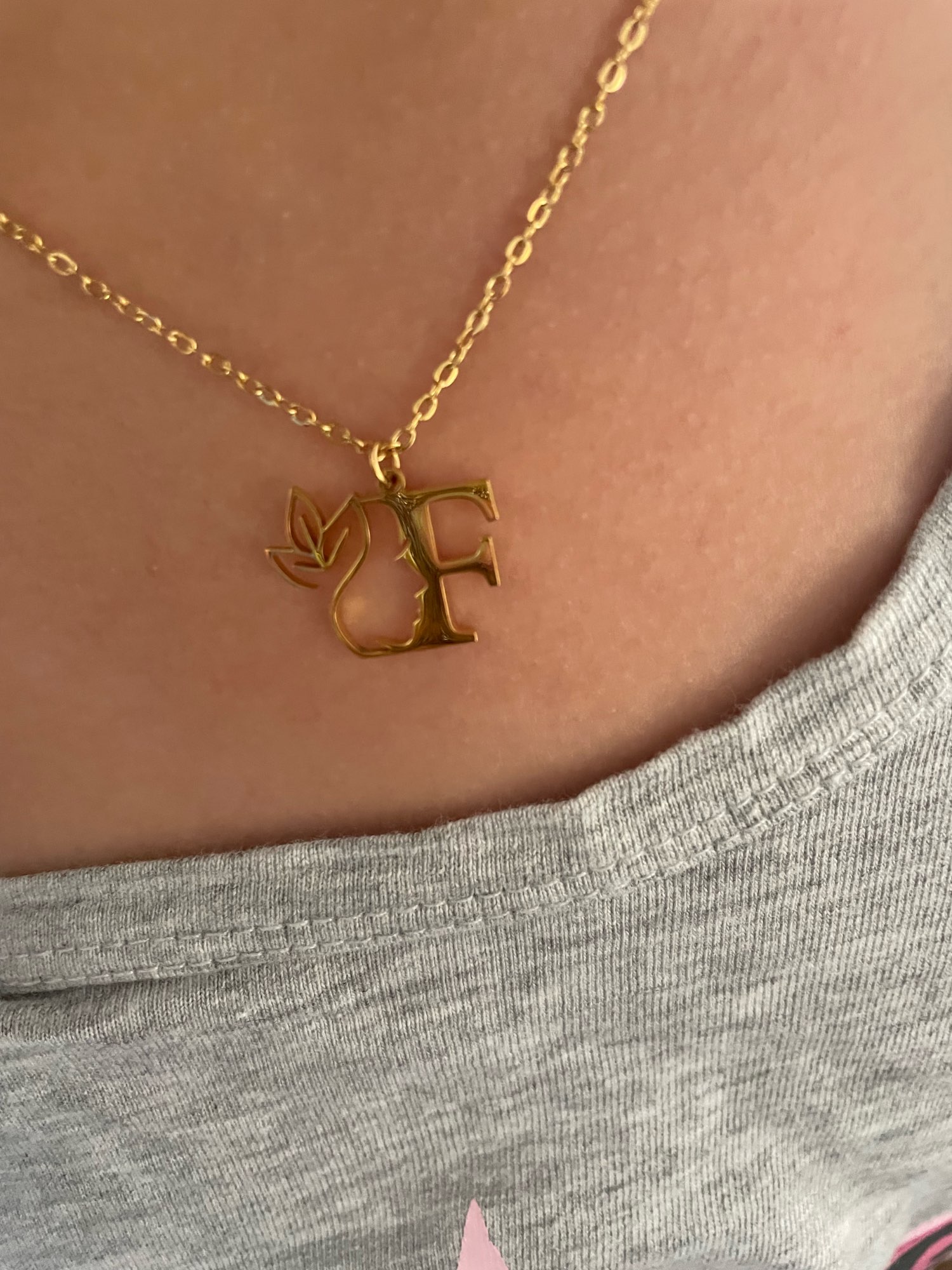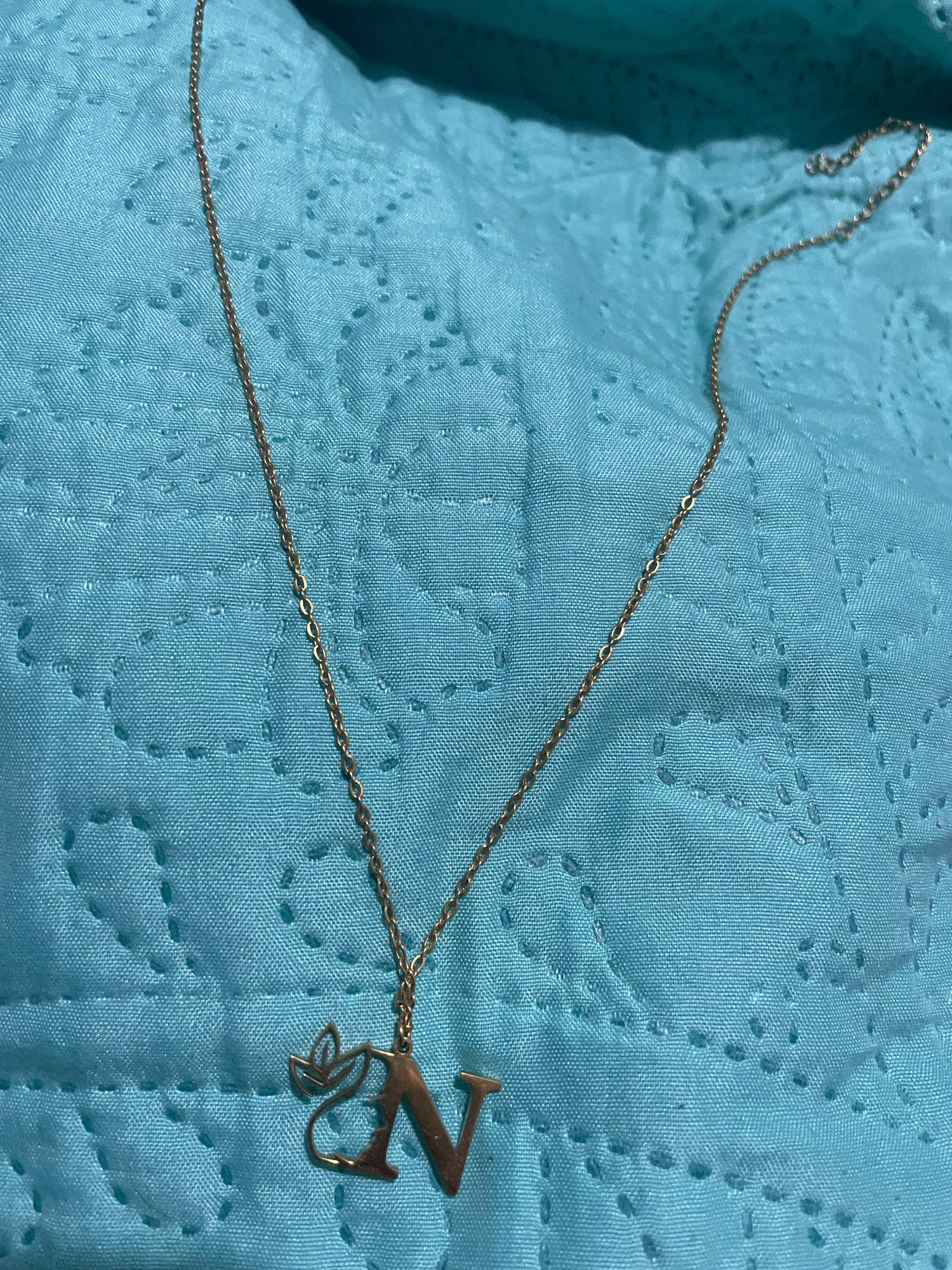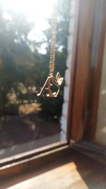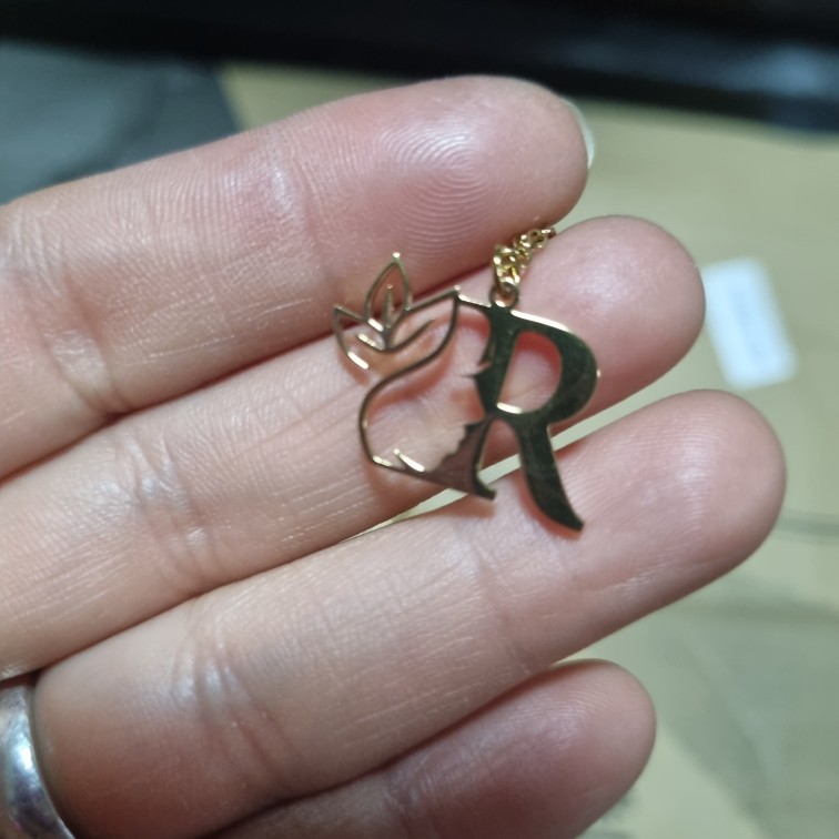 Beautiful pendant with initial .. it is different with the flower next to it is very original, fine .. I like the stainless steel does not spoil .. the order arrived quite quickly .. very happy with the product ..