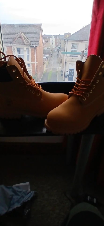 Buty najwyższej jakości. Wykonane z naturalnej skóry ( nubuk) !! Tabela rozmiarów jest ok, w Polsce noszę rozmiar EU 45 według tabeli musiałem kupić 47 i był to doskonały wybór. Prawdopodobnie kupię kolejną parę. Polecam!