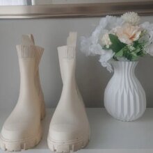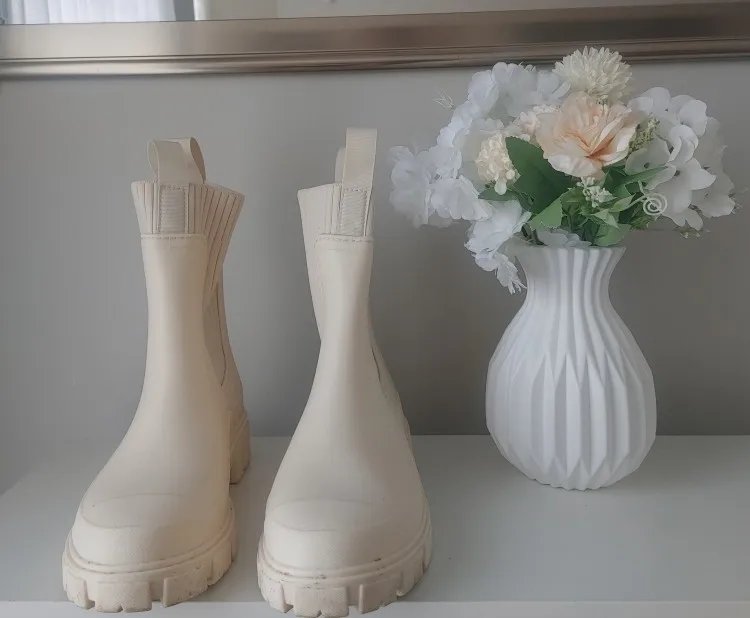 прекрасные резиновые сапожки. пришли очень быстро. фотографиям соответствуют. размерная сетка верная точка уже успела походить, не промокают.