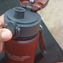muy bonito, botella plástica para agua, es excelente, tiene boto para abrir automáticamente