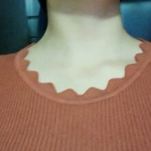 The blouse has a kind of fine mesh, but it is soft and good quality, I like the detail of the collar, made of triangles, a charm, recommend