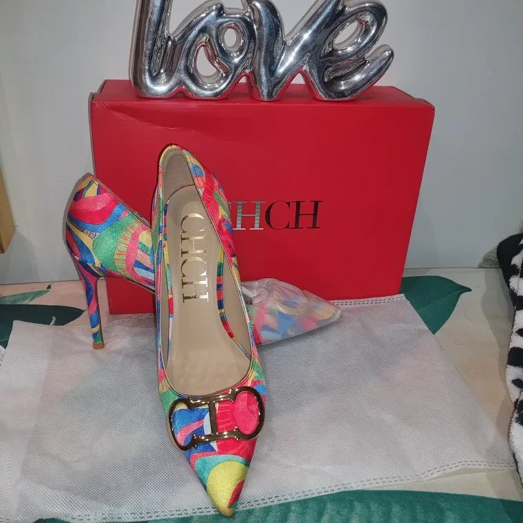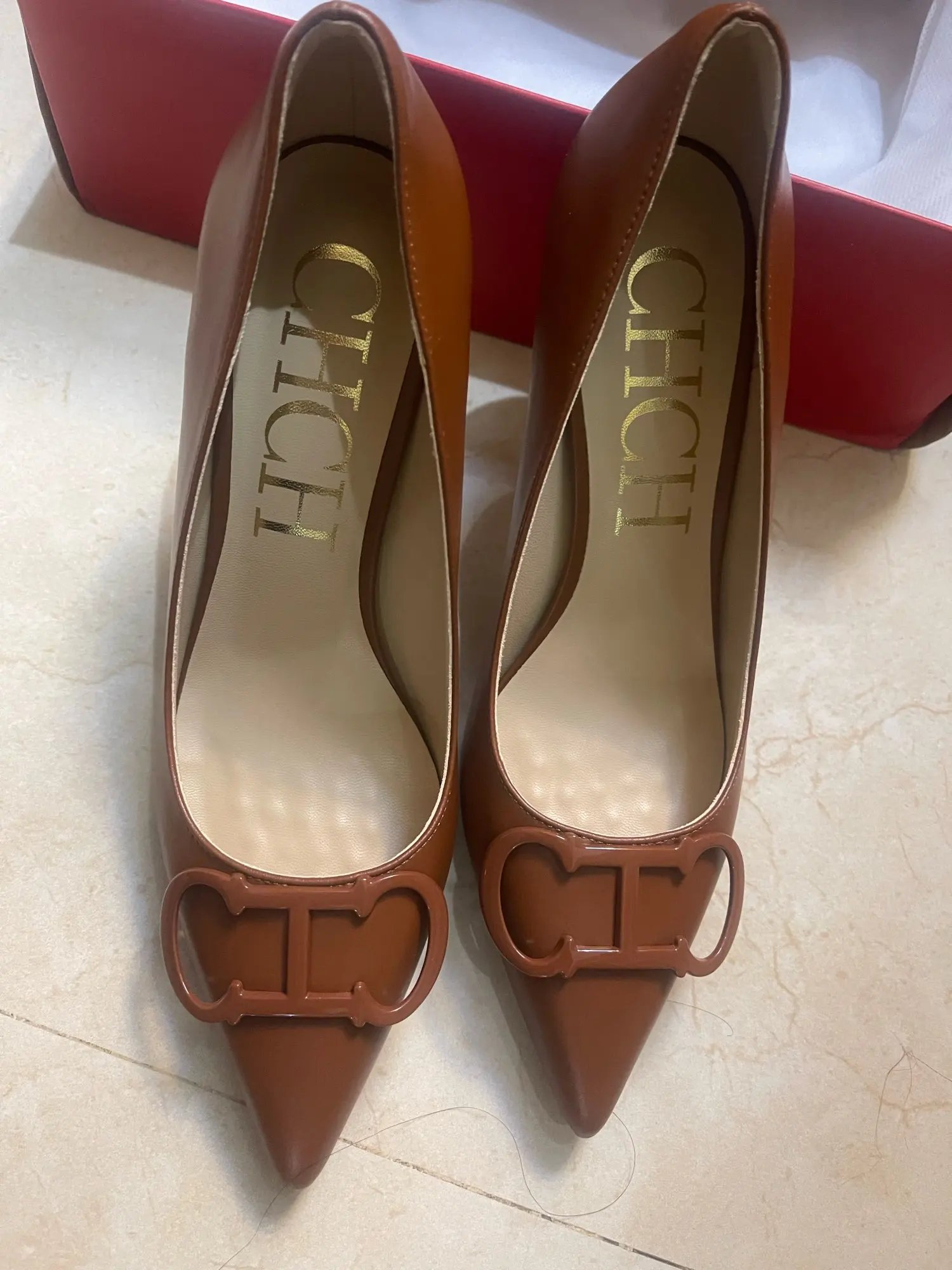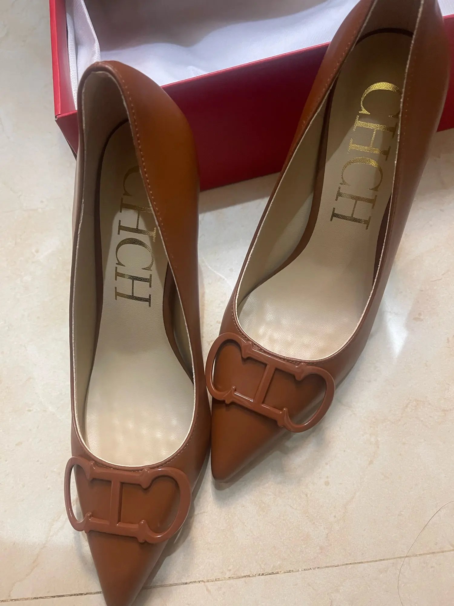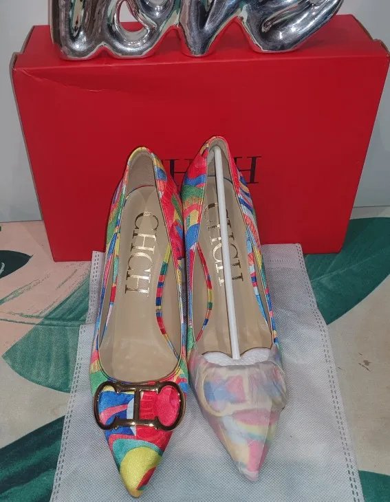 CHCH Women’s High Heels New Pointed Metal Buckle Party Carnival Women’s Shoes 9cm