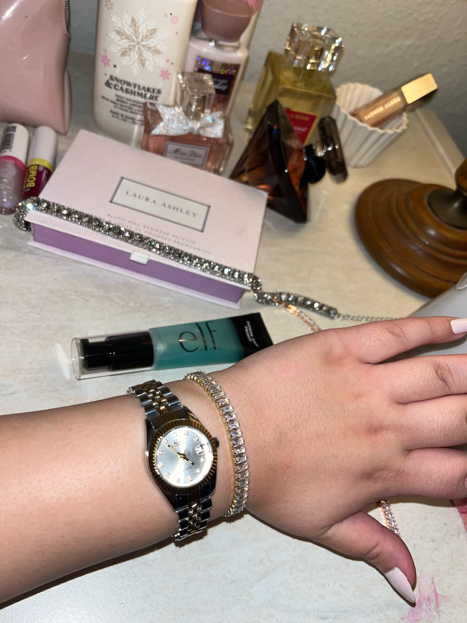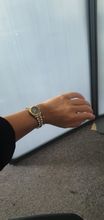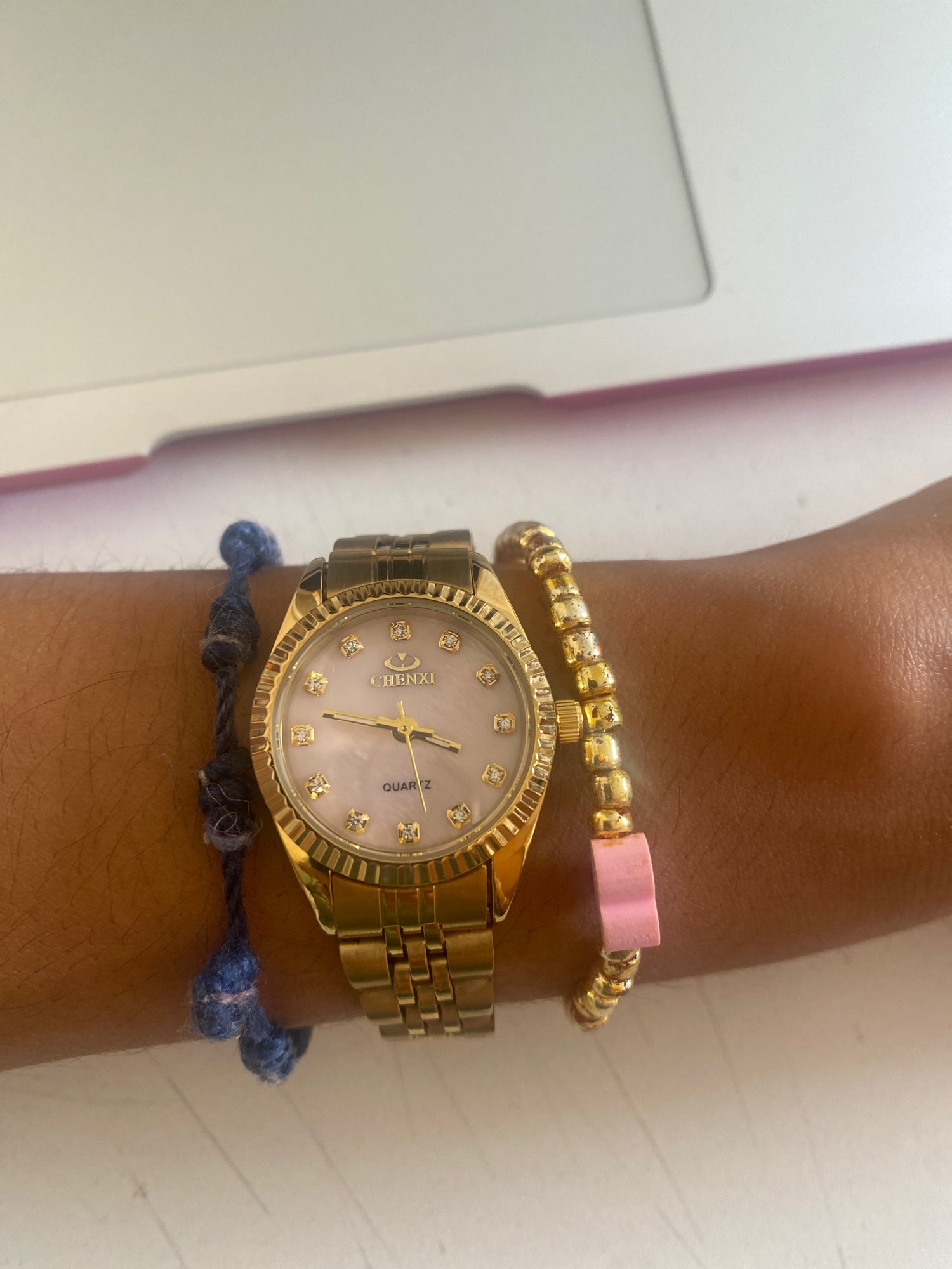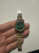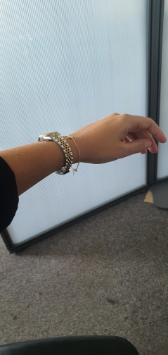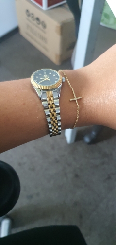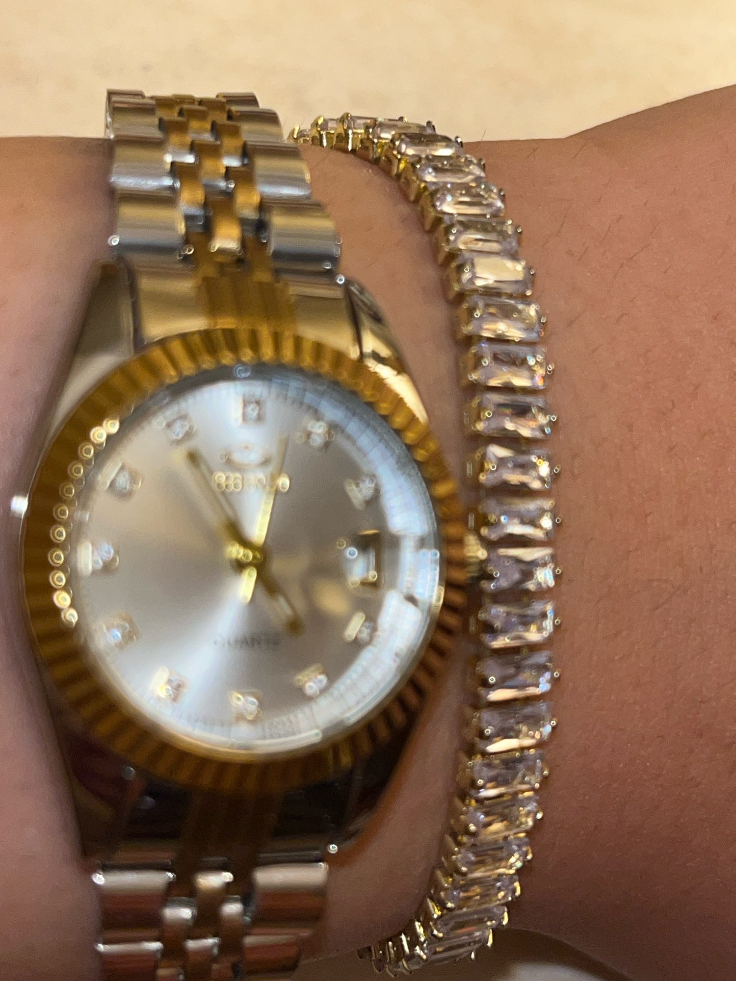 Perfect colors, i have a little darker color of my skin so it compliments very much with the green. Perfect gold. And perfect for small wrist. Need to adjust to profesional