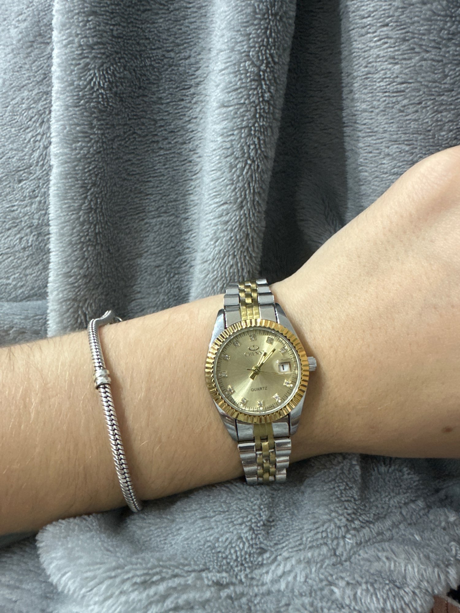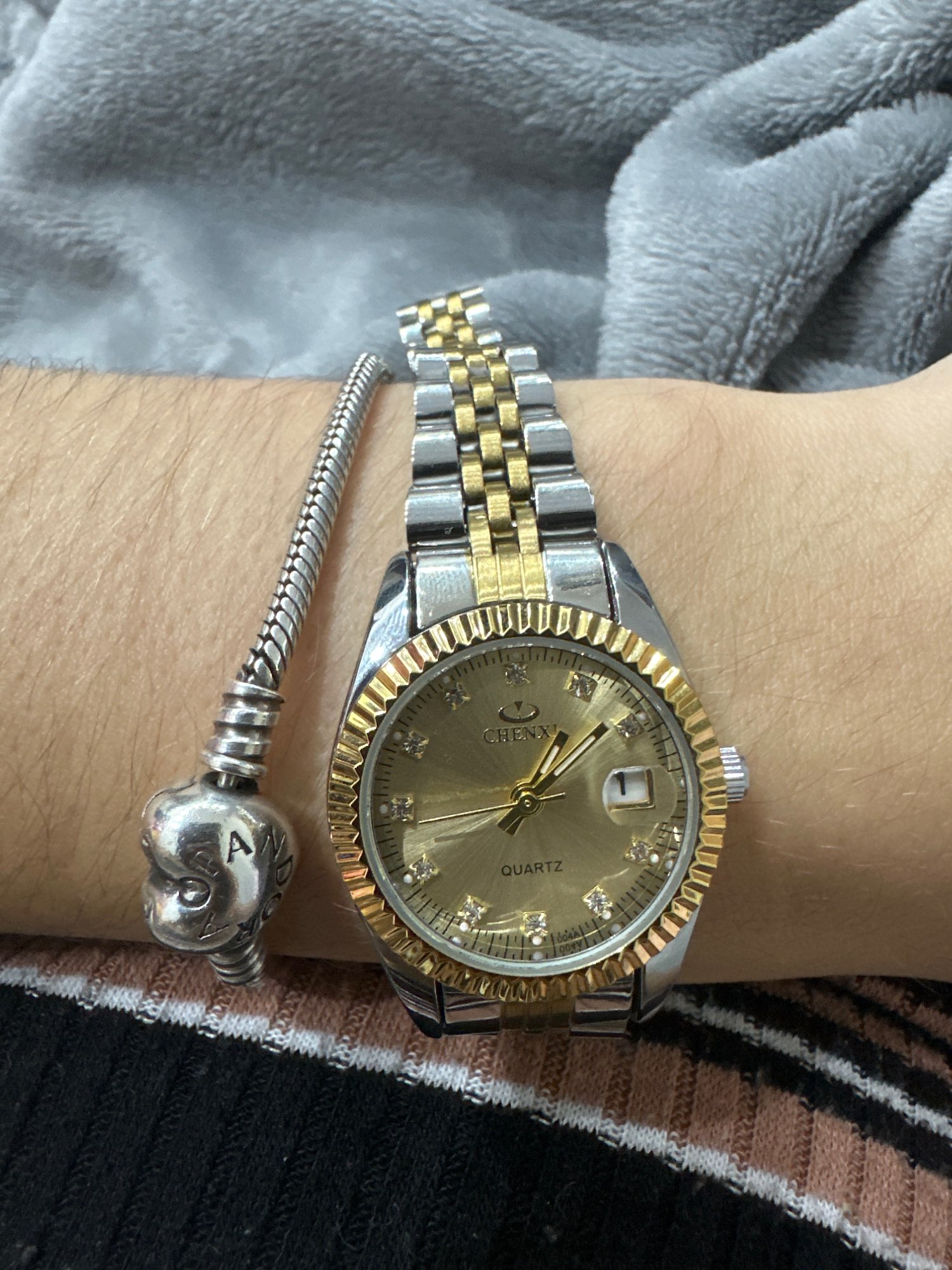 This is so cute and classy on the wrist, especially with other jewelry items on the same wrist. if you're thinking of buying this don't hesitate.