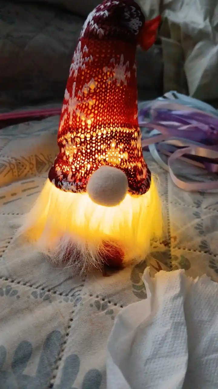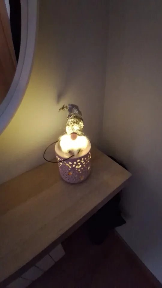 le gnome rouge est trop mignon hâte de le mettre dans ma décoration de noel en plus il s allume j adore, c est vraiment top. Un peu petit mais tellement mignon