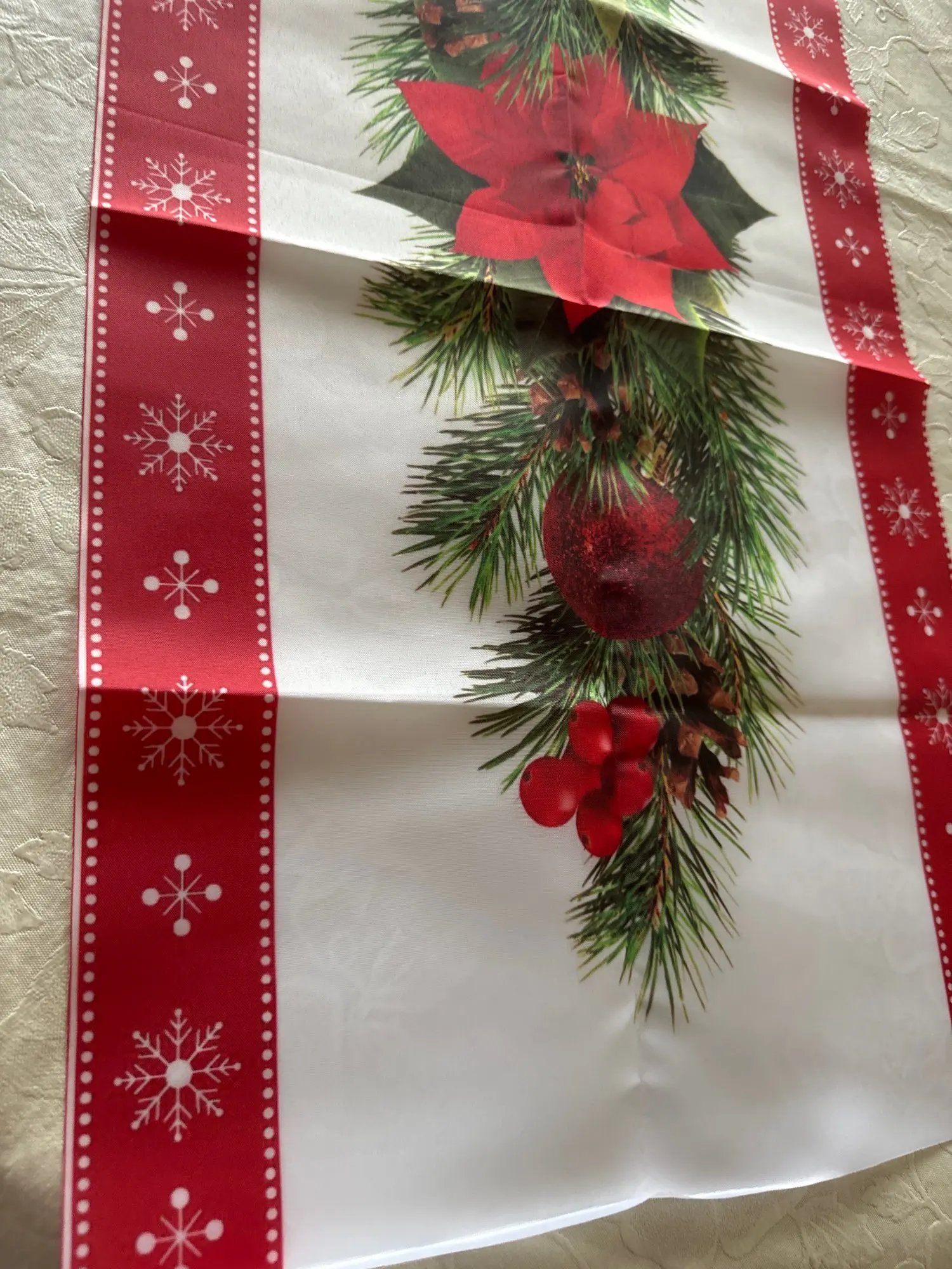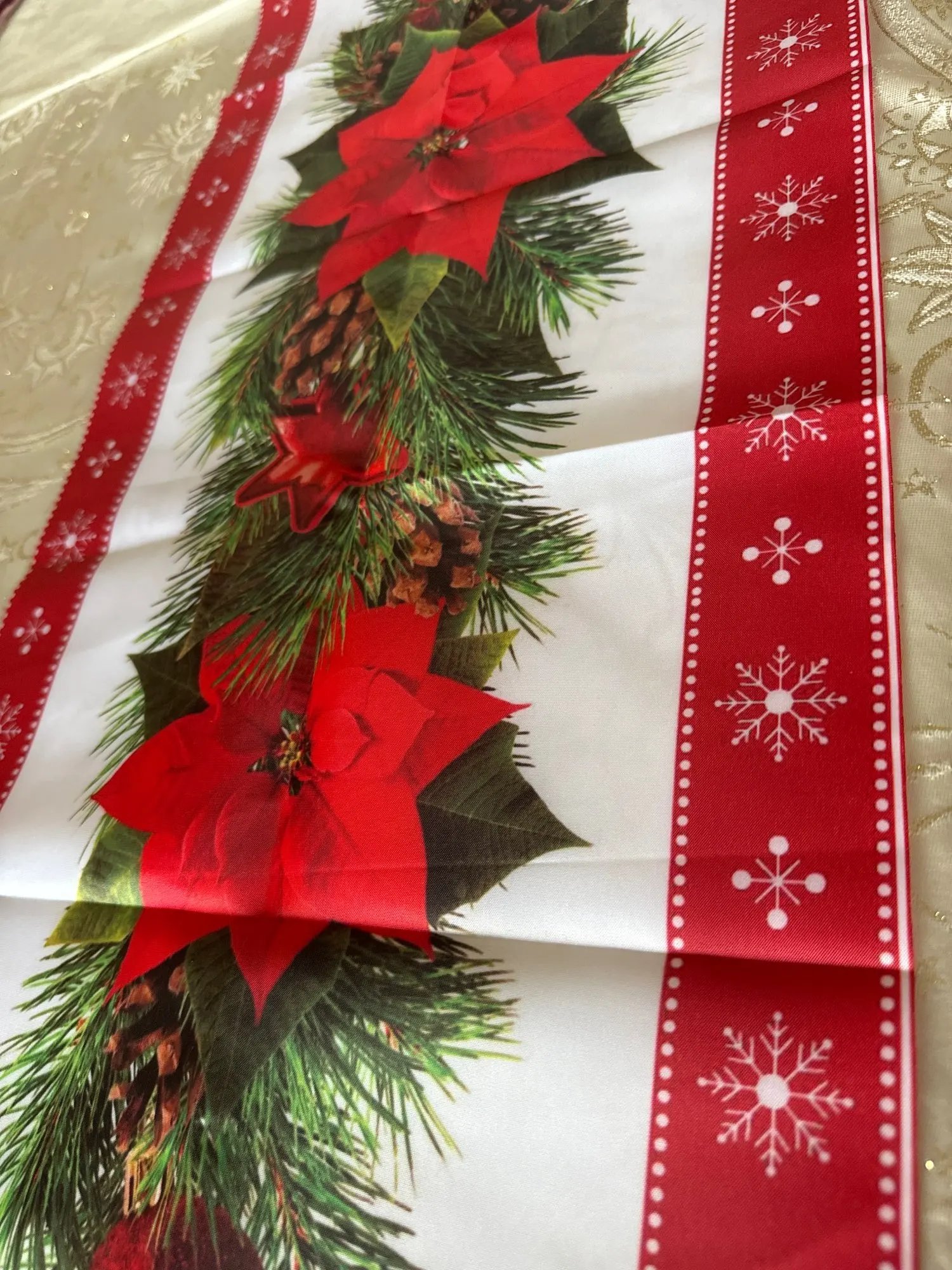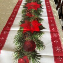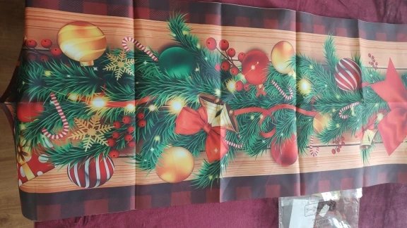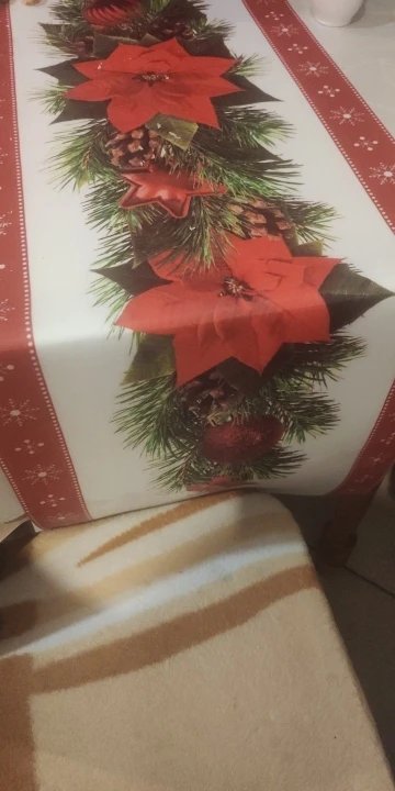 дуже класна новорічна скатертина, нейлон. Легко переться. Кольора яскраві, товаром задоволена.