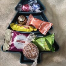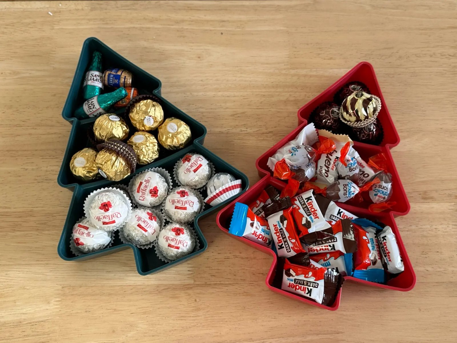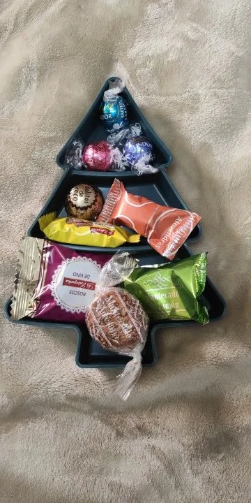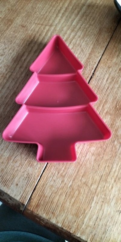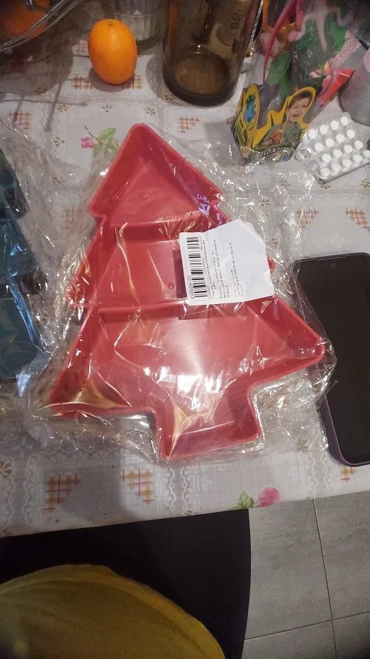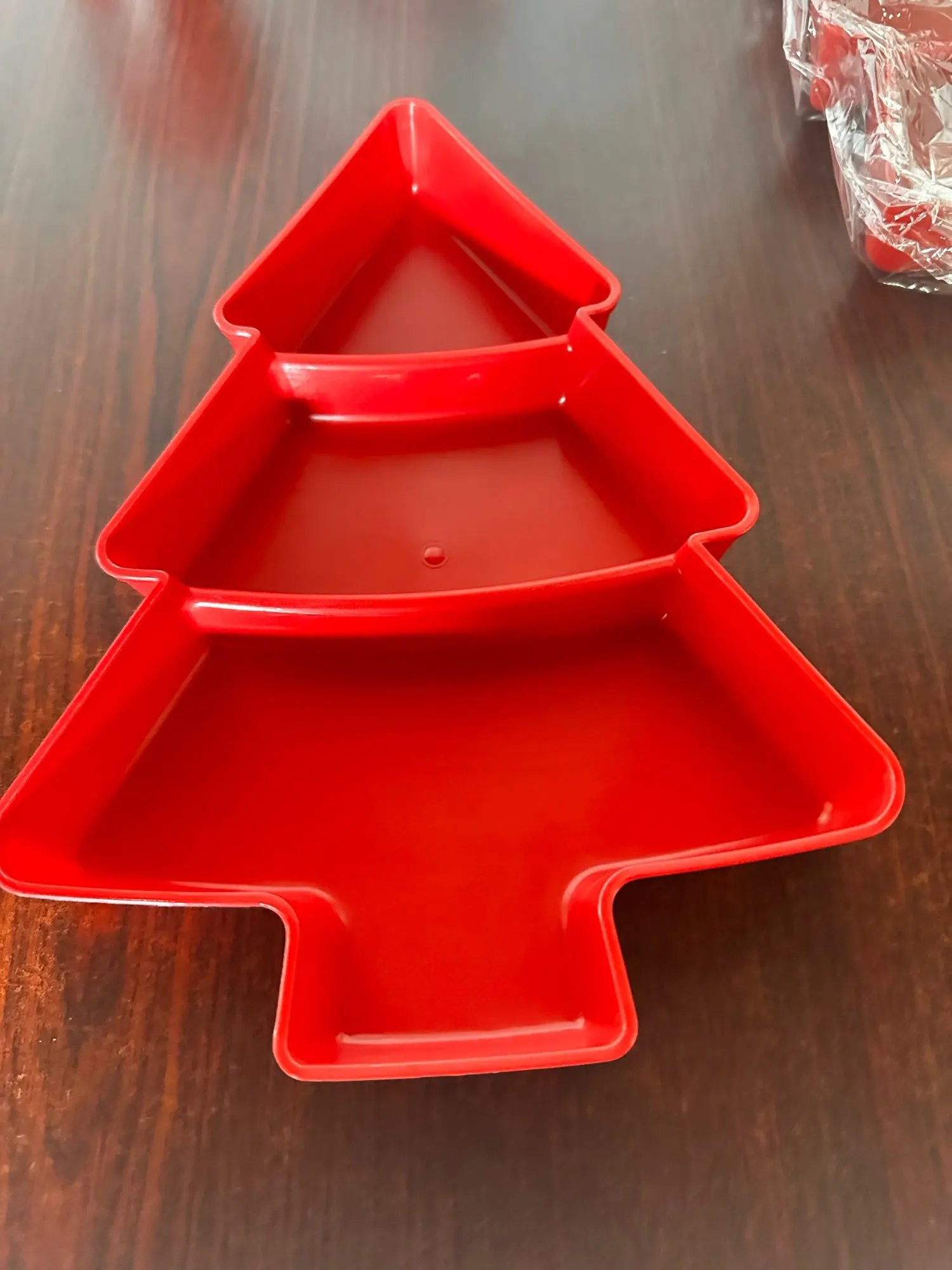 El cuenco navideño está chulo. Es de plástico, pero parece resistente y poner los dulces navideños en él queda genial.