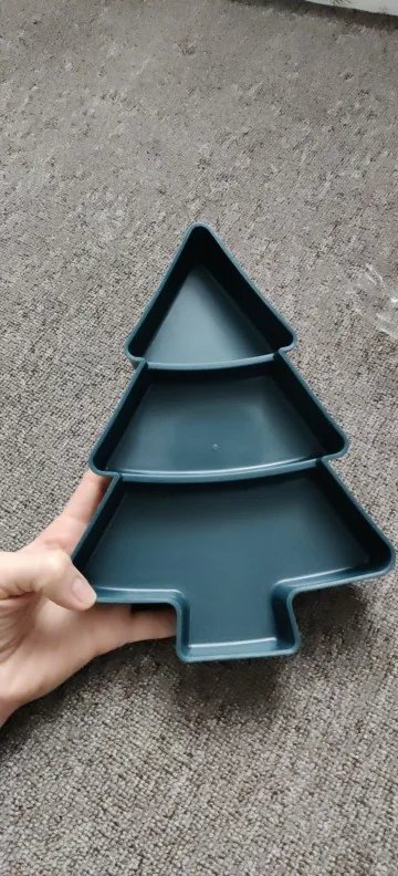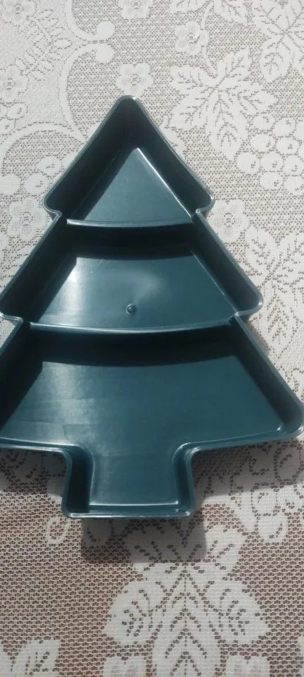 супер органайзер для новогоднего стола,цвет насыщенно темно щленый.сделано добротно хоть и пластмасса,но пришло все целое.