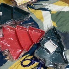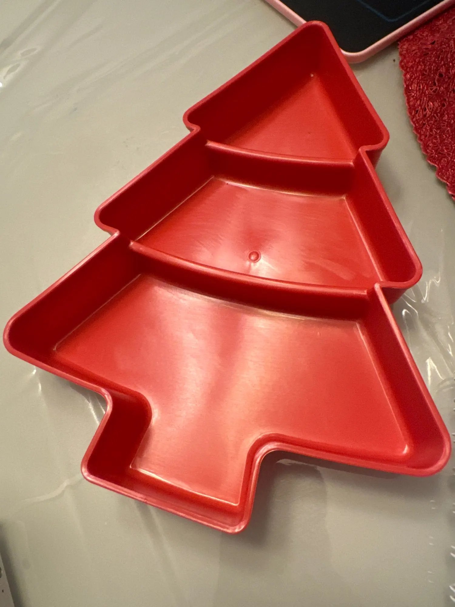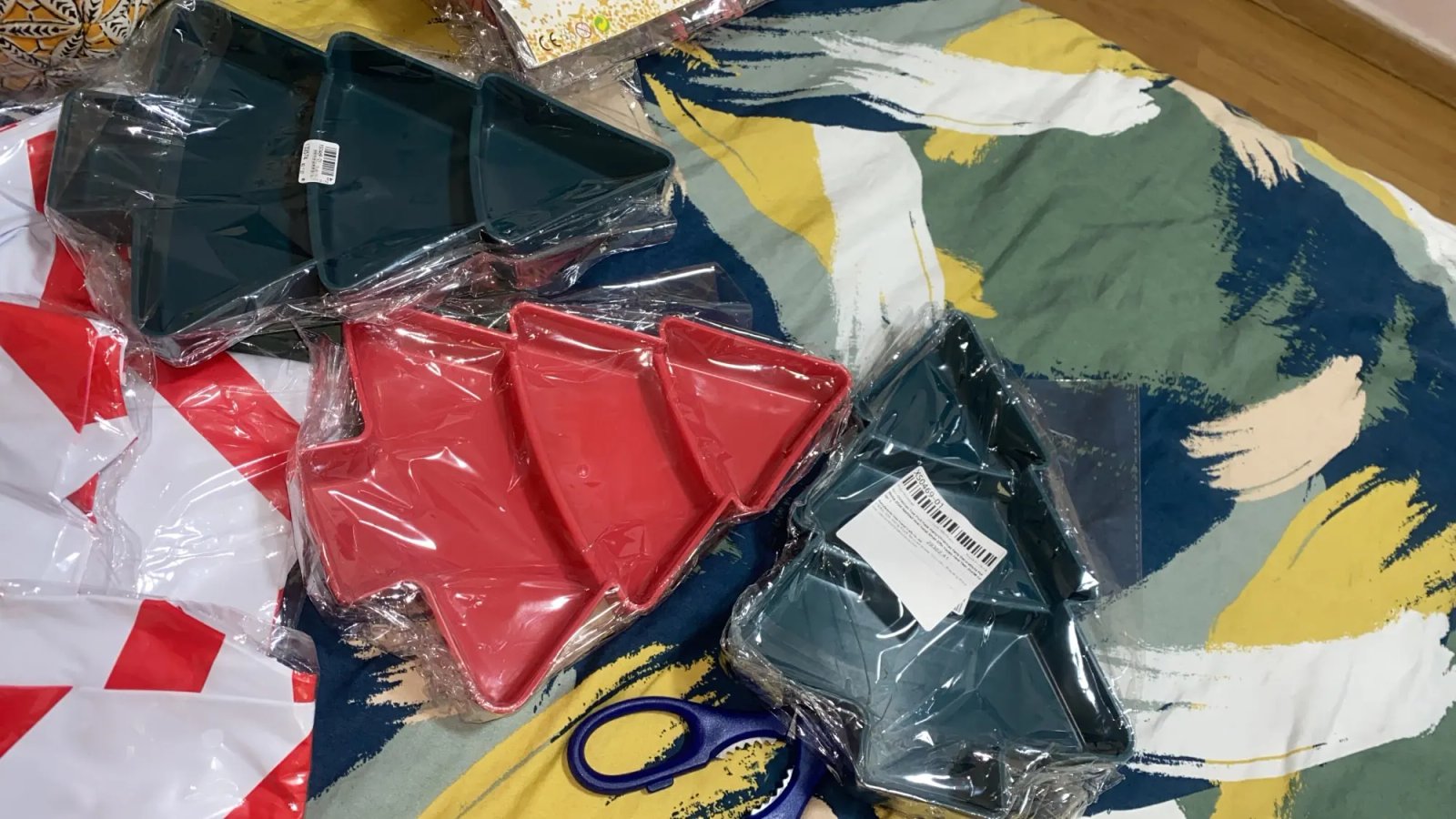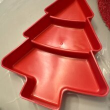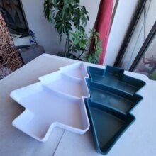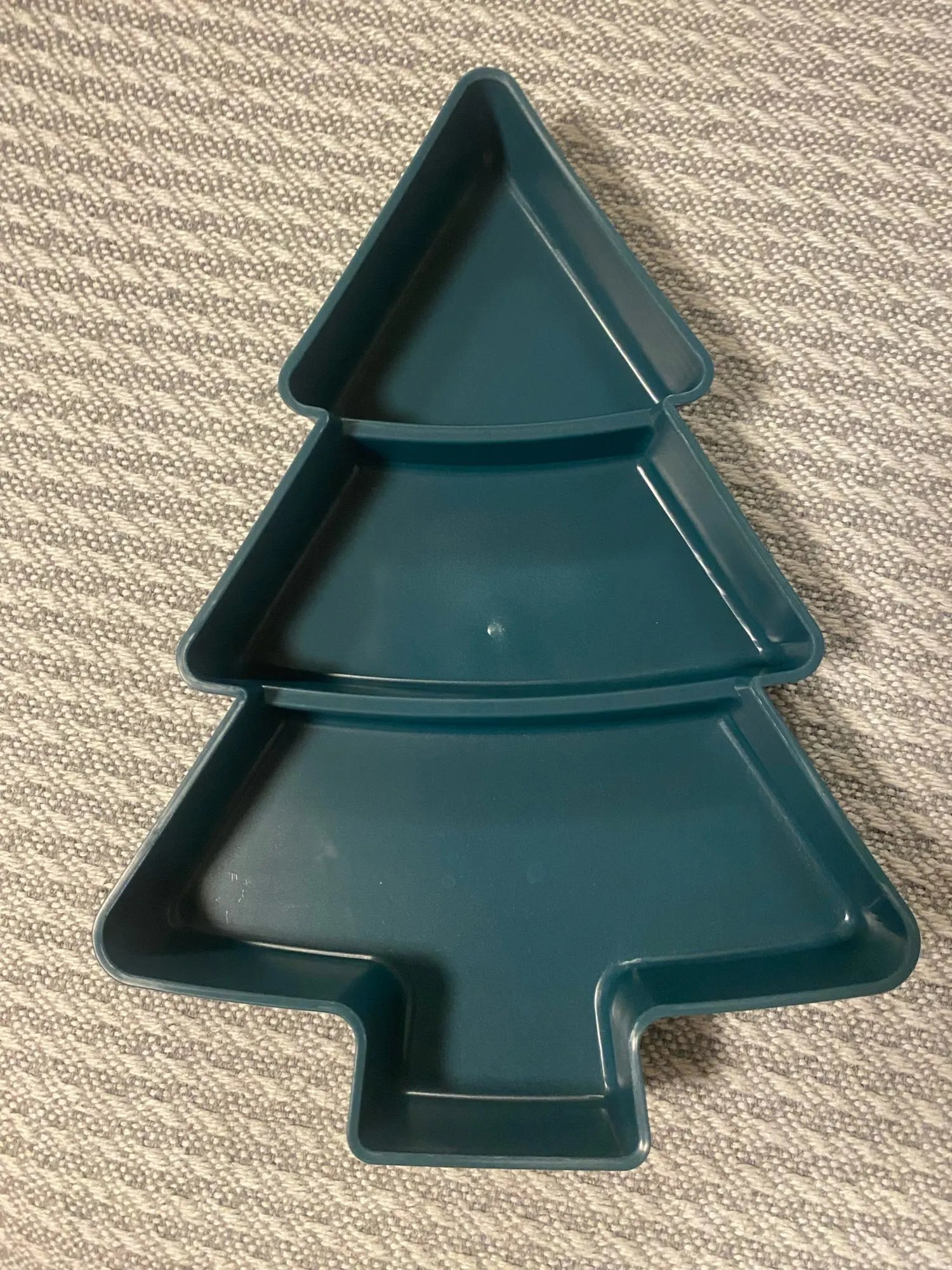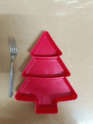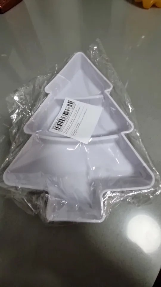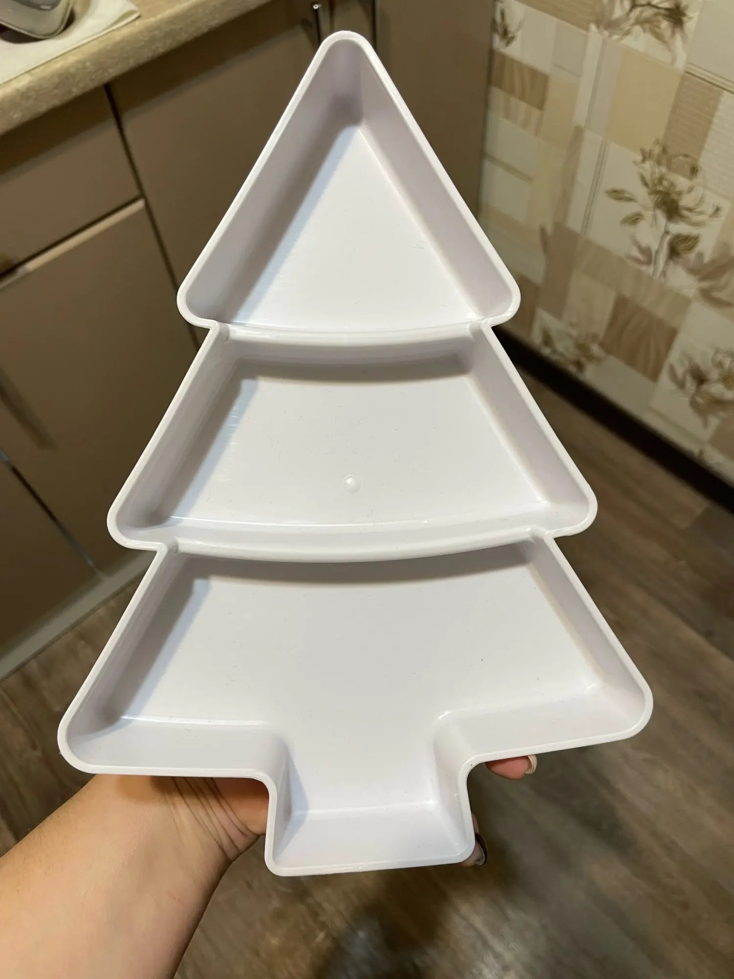 Пластиковая тарелка елочка с разделителями, быстрая доставка мист экспресс в сборной посылке, упакована была просто в пакет, но приехала целой