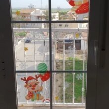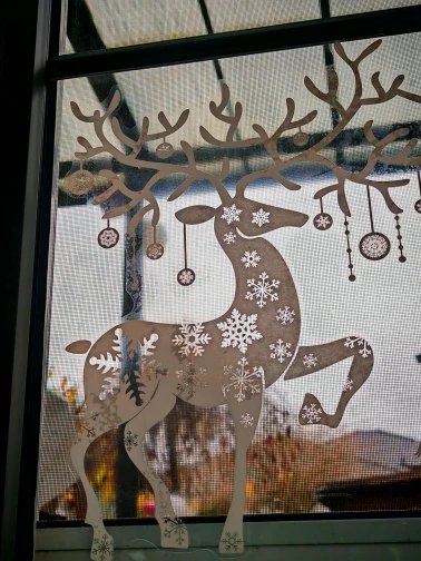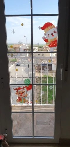 Sticker molto belli, di dimensioni piuttosto grandi e buona qualità.. non hanno colla adesiva, sono in plastica simile al silicone che a contatto con il vetro restano attaccati.. molto molto soddisfatta, rapporto qualità prezzo ottimo, sicuramente ne acquisterò altri il prossimo anno .