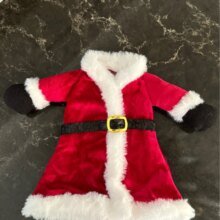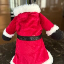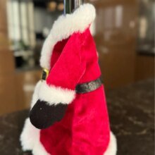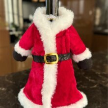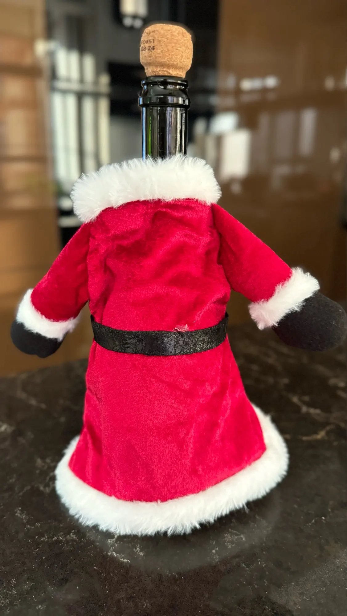 Милая шубка, на бутылку шампанского налазит свободно) Выглядит красиво и празднично. Рукава пришиты немного криво и на спинке видны следы клея, но в общем неплохо )))