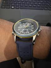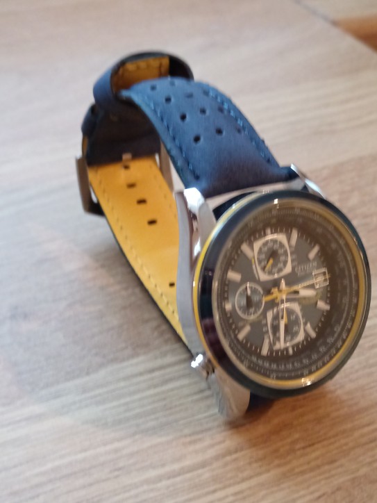 Not bad for $20. The blue "leather" band is suitable for this price range. Super fast 9 days shipping to USA. I would buy this watch again.