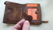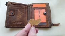кошелёк кособокий какой то.насчет кожи не знаю.