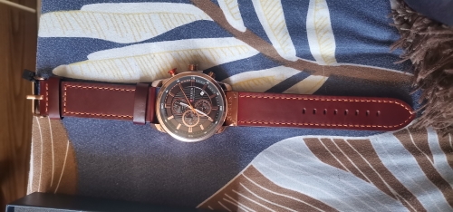 Product well packed. Very beautiful watch. Synthetic leather bracelet. Clock with functional chronograph.