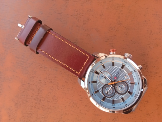 The watch is very beautiful. Very well finished. But mine came with a problem, the second hand comes back two places in 3 points between 5 and 15 seconds. Maybe it can be battery, but I think it's too young to be already failing