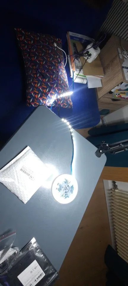 Reçu rapidement, merci au vendeur. Déjà, on est sûr que la bande leds fonctionne, en voyant la photo.