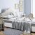 כמו בתמונה. הגיע עם כיסוי לכרית, סדין ושמיכה. רק שימו לב שאין אפשרות לשים פוך לתוך הסמיכה זו סמיכה של שכבה אחת של בד. מתאים לקיץ.