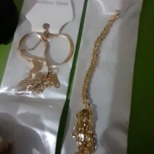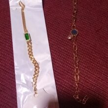 The bracelet is pretty, just a little too light. I have a very slim wrist and I fasten on the penultimate eye; consider when buying that it is quite short. Despite everything, I am satisfied with the purchase. It is worth telling earrings, necklace and ring for the set :)