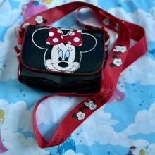Cute tiny Minnie Mouse purse with straps for a young girl (3-5 year old). Mostly for dress up. Not large enough for a phone or wallet.