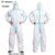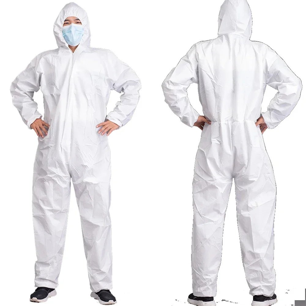 Type2: SMS Material (Spunbond + Meltblown + Spunbond Nonwovens)(Note:not waterproof,only Dustproof,water resistant,Splash-proof,but water can go through)The advantages of SMS material are breathable, dustproof and tear resistant. It is suitable for hospital and laboratory 100,000 purification workshops.waterproof funtion is better than PP material.Type3— SF Material (Note: waterproof,Dustproof,water can not go through)SF breathable membrane material has the advantages of water and oil proof, acid and alkali resistance, liquid splash resistance, suitable for chemical plants, painting factoriesAdopts breathable material, more comfortable to wear,-Surface waterproof (different material with different waterproof grades) , oil-resistant and dust-proof-Elasticated hood, legs, cuffs and waist.-Have a hat, you can wear a mask and glasses for better protection-Two-way zip frontWhite/Blue for chice, 4 sizesIdeal for Painting, Decorating, laboratory etc.Weight: 110~170g(different material with different weight)-