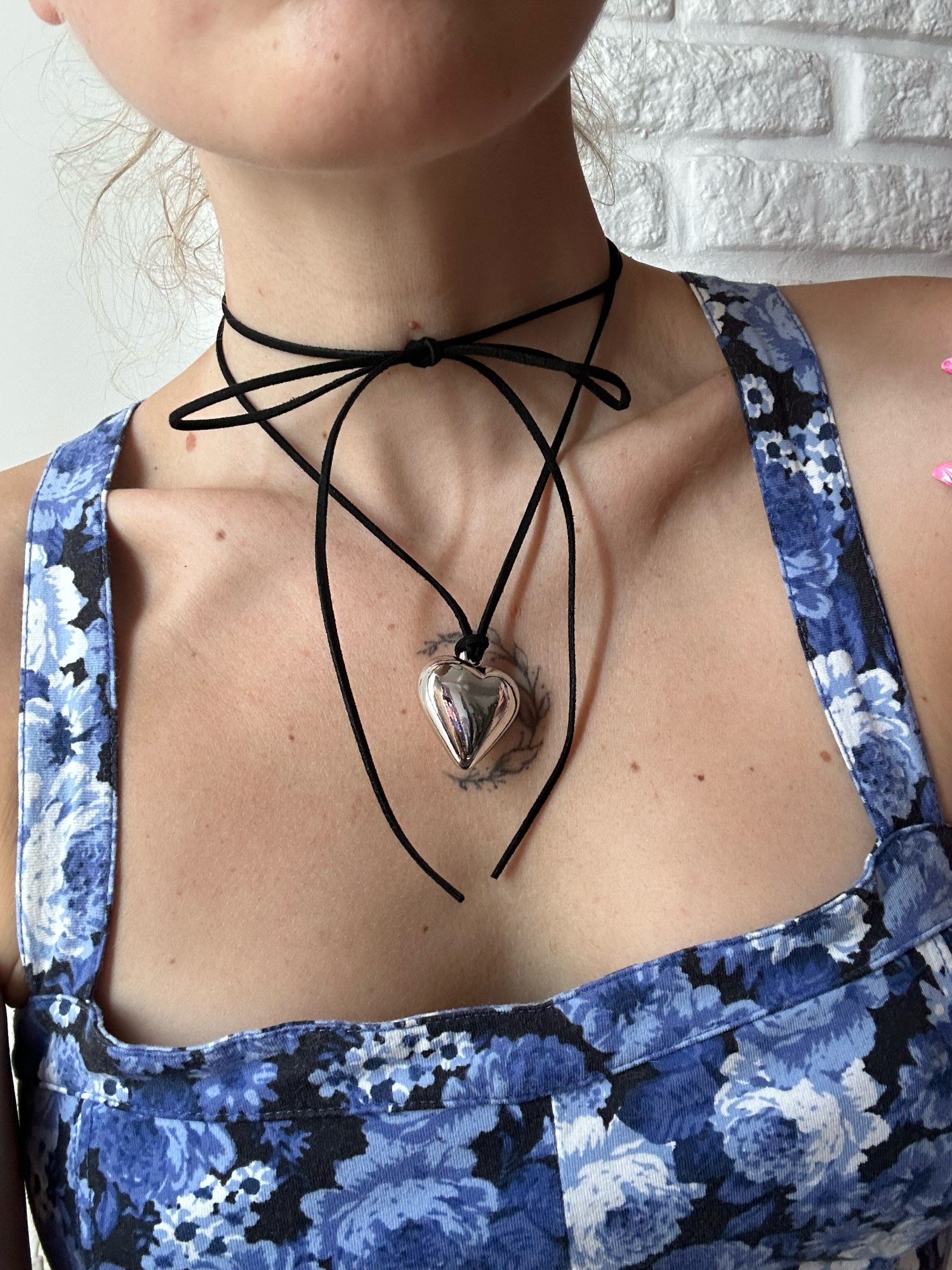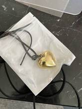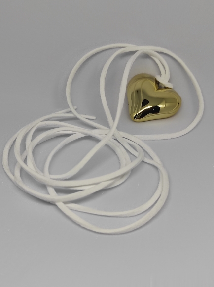 The heart is yellow, yellow. The drawstring is long. The neck looks great! I recommend it unambiguously. Light, quality. Class!
