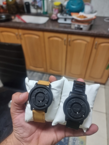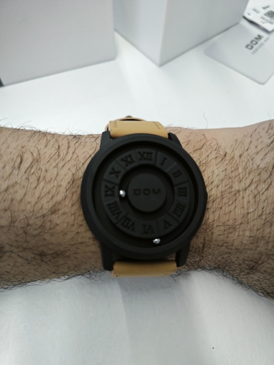 This unique looking watch shipped quickly and runs great. It's pretty entertaining to dislodge the metal balls with your fingernail and race them around the track (almost like a fidget toy). The only thing that is a little annoying is that the inner ball is minutes and the outer ball is hours (which is backwards from most watches) and makes me occasionally read the wrong time.