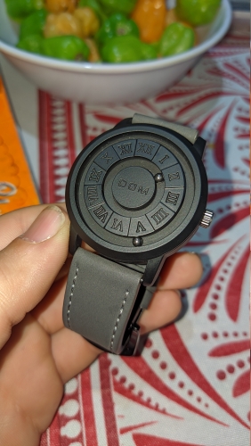 The watch is as it is in the photo. I found it spectacular, since it is an unconventional or traditional type of watch. It is original and attractive in its model, out of the ordinary in relation to other watch or digital models that are currently in trend. I recommend it 100% to those who want to have more exclusivity in this type of product.