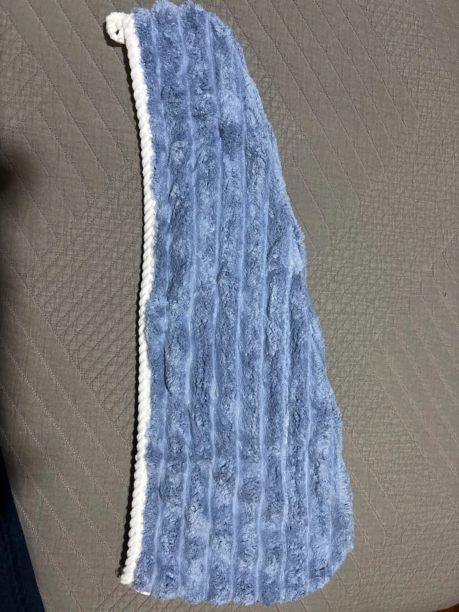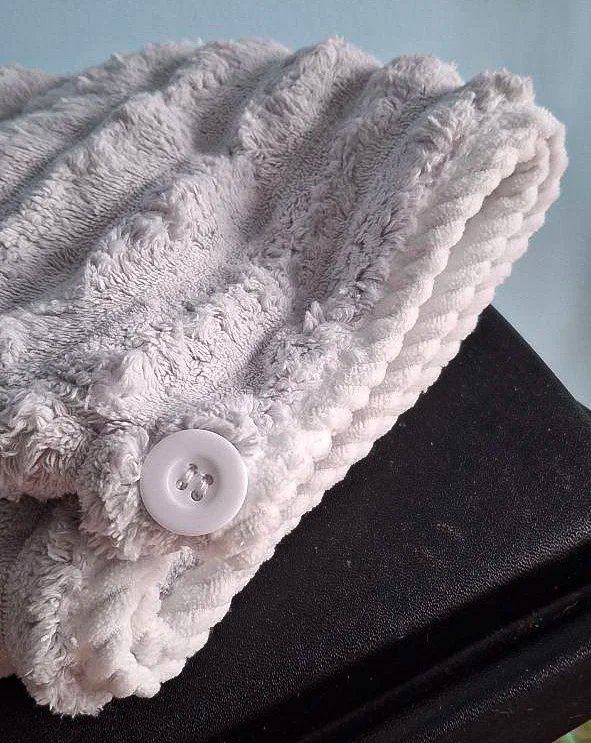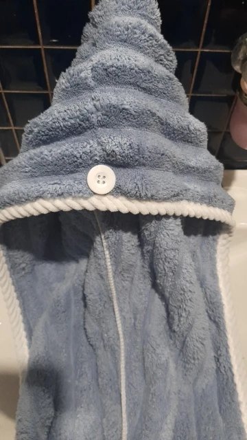 Дійсно нормально поглинає вологу, перед першим використанням випрала його, щоб точно добре поглинав, бо на дотик був не дуже приємним, синтетичним. Але як виявилось зі своєю задачею справляється добре і доволі обʼємний, отже має бути зручним для густого і довгого волосся. З мінусів можна відмітити петельку, вона з тканини, а не з резинки, тому трохи важко застібувати її на ґудзик)