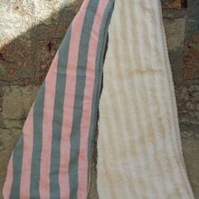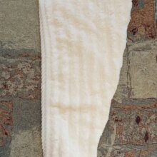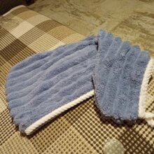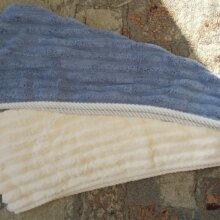 Чудова шапочка для волосся, якість на висоті, досить товстенька, об'ємна, м'яка. У порівнянні з іншою (у смужку на фото) більша й об'ємніша, підійде для довгого волосся. На синтетику не схоже, тканина дуже приємна. Замовляла одразу кілька штук, чомусь прийшли різними замовленнями і різні способи доставки. Але товар і продавця однозначно рекомендую!