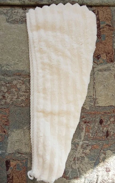Легесенький рушник, не обтяжує волосся. Охайно пошитий. Розмір відповідає заявленому. Швидко доставили.
