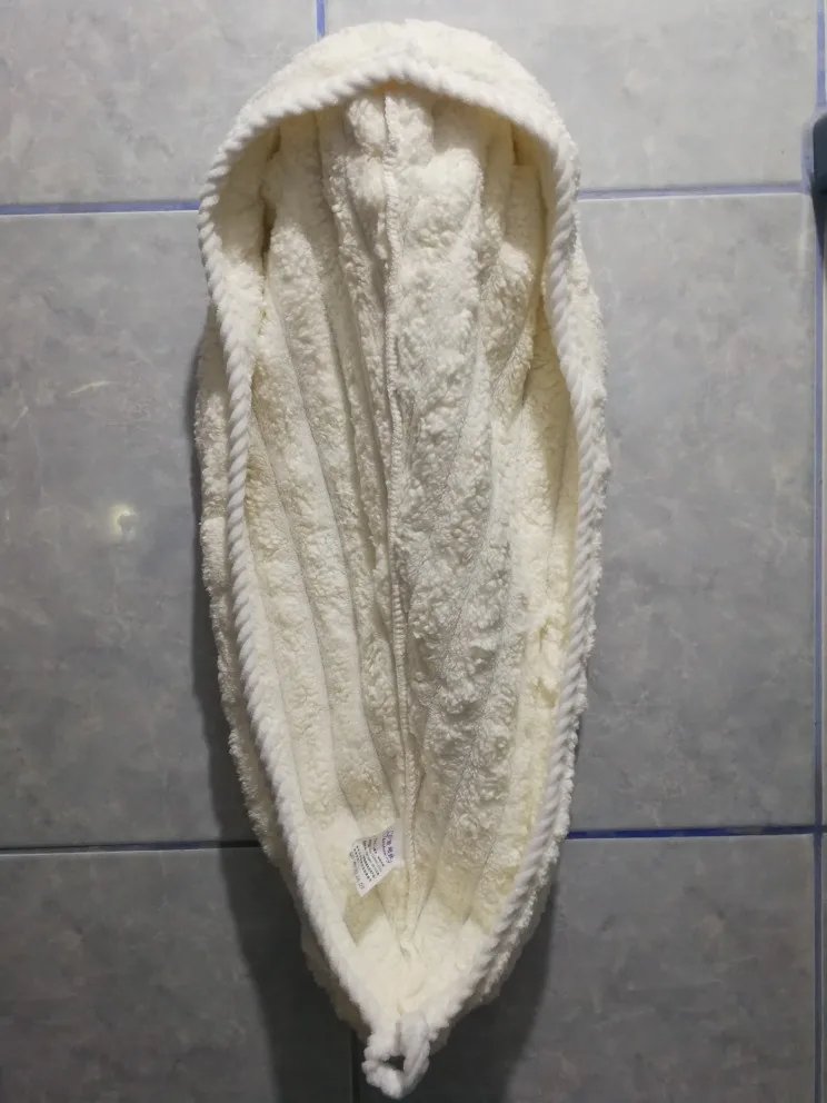 классная вещь реально сушит волосы быстрее только немного грамоская для моих коротких волос, но теплая и мягкая спасибо ❤️