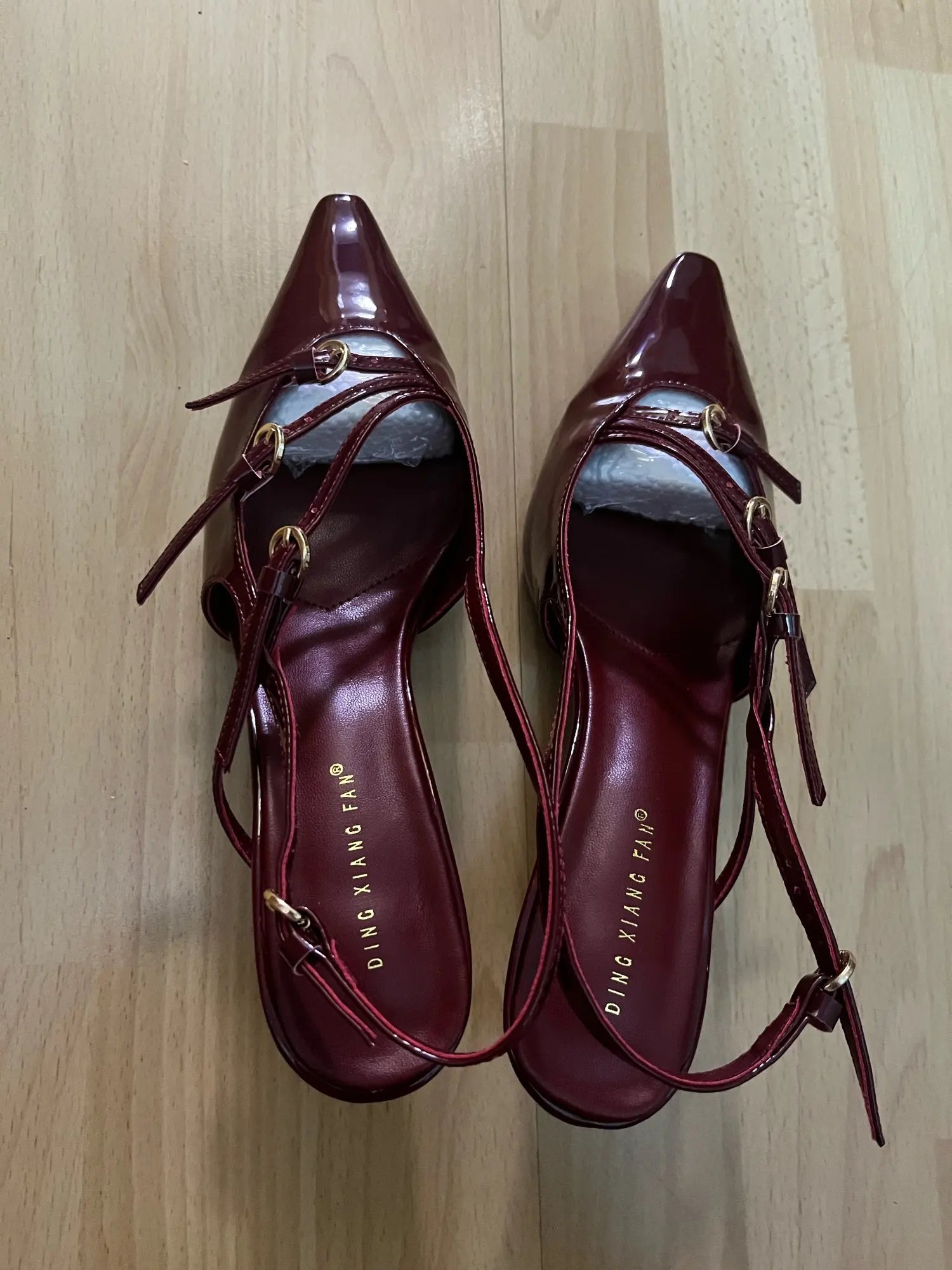 Отличные туфли, удобный, невысокий каблук, не сильно большими смотрятся на ноге. Удобные, с удовольствием протанцевала в них весь вечер. На российский 38 подошел 39 размер. Единственный минус - пришли без коробки, без защиты какой либо, чудом не помялись при транспортировке. Продавцу стоит позаботиться об упаковке лучше