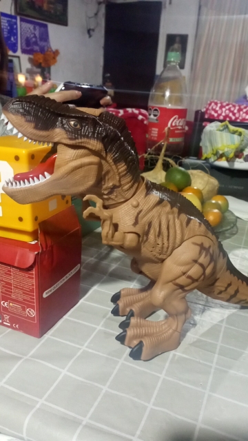 o meu filho adorou este brinquedo. se colocar água no depósito atrás da cabeça, sai vapor pela boca. é muito engraçado