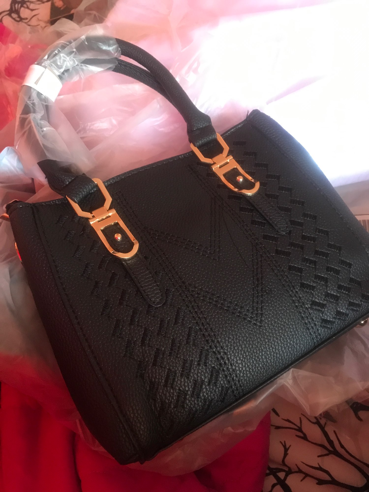 The bag is very beautiful and very bright red, it came well packed and arrived very quickly, I recommend it too much!
