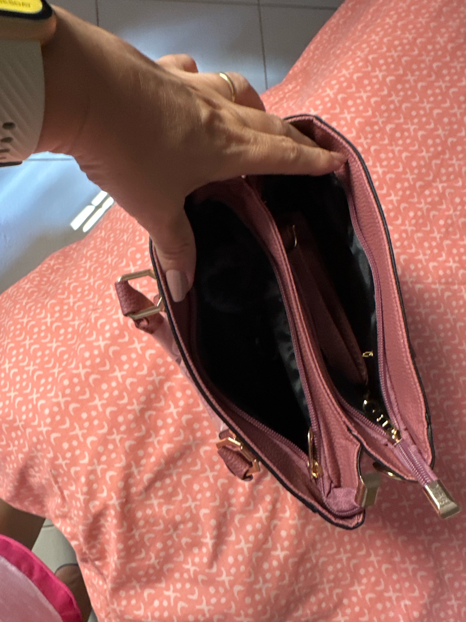 The bag is pretty. Bought it as a gift so I don't want to open it. I opened a bit to check the inside, and it's good.
