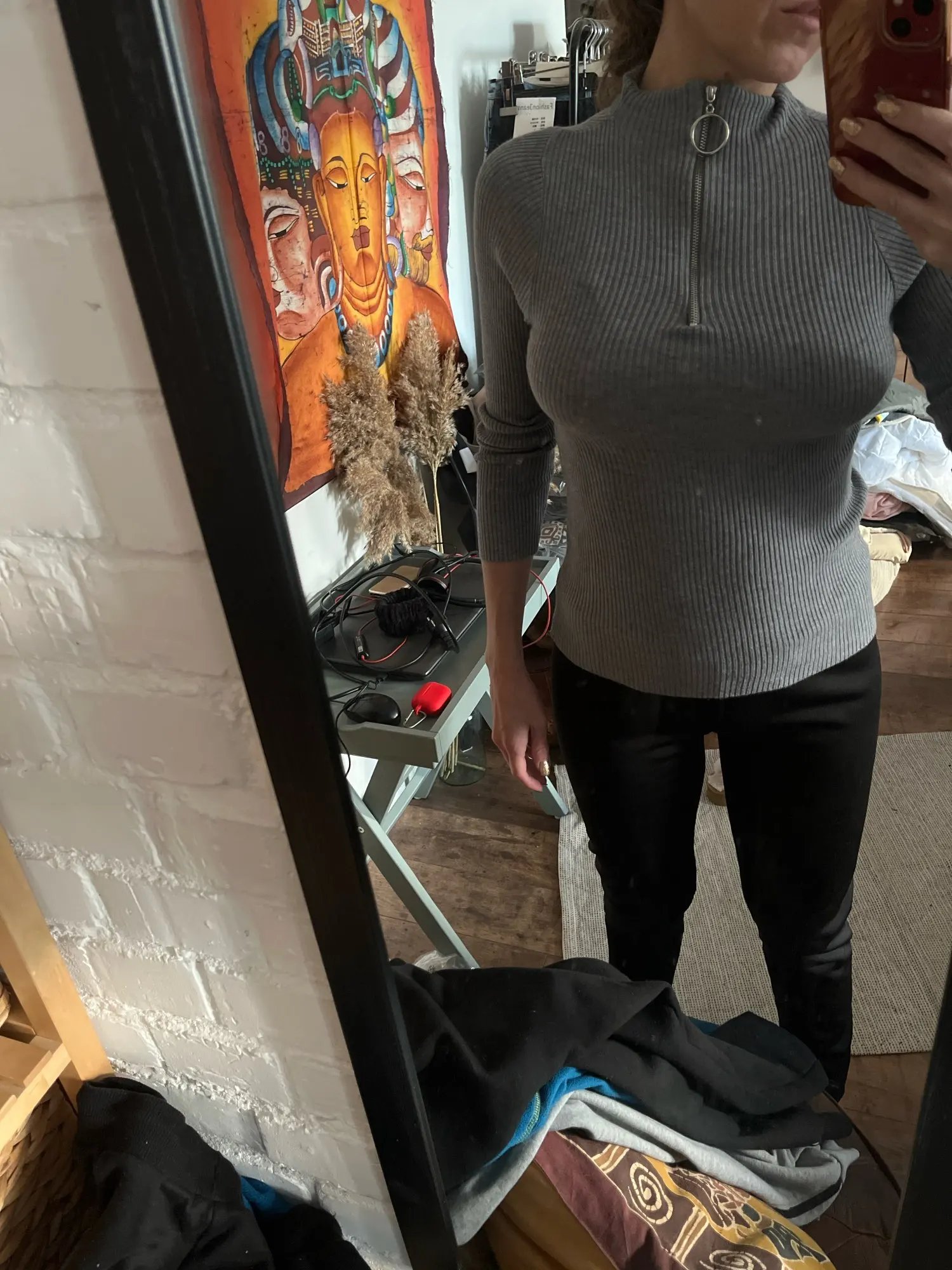 Beautiful! Equal to the image and in addition it is of a super soft fabric. I recommend it! It stretches quite a bit and I had no problem with the zipper. Recommended
