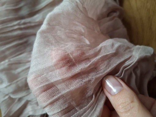 цвет совпадает с фото продавца, ткань похожа на марлю, они скорее для декора, чем для использования, потому что для функции салфеток они слишком тонкие просвечивающиеся и ткань не натуральная