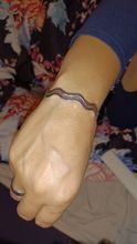 Nice bracelet, according to the photo, I do not have an allergy and for the moment, it has not tarnished with the water. I recommend. Delivery in less than 1 month.