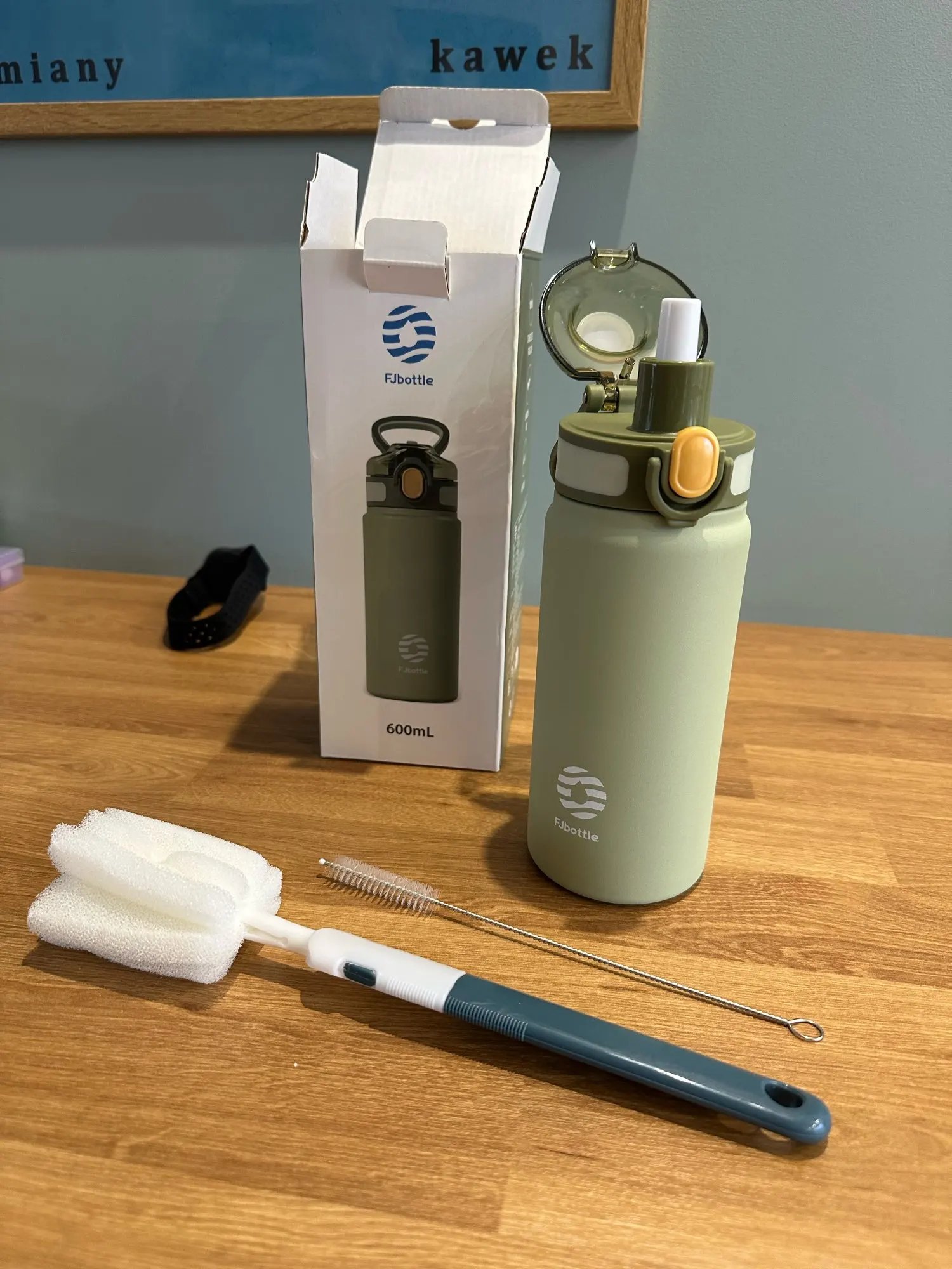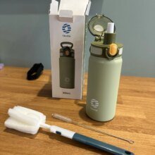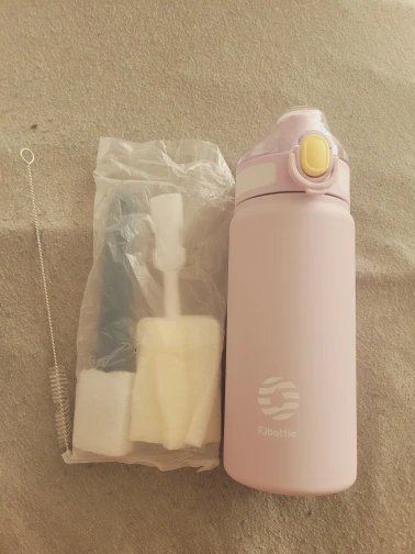 Looks and feels good. Nice pop-up straw design. Comes with usefull acleaning accesories.