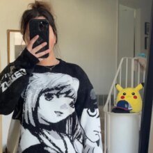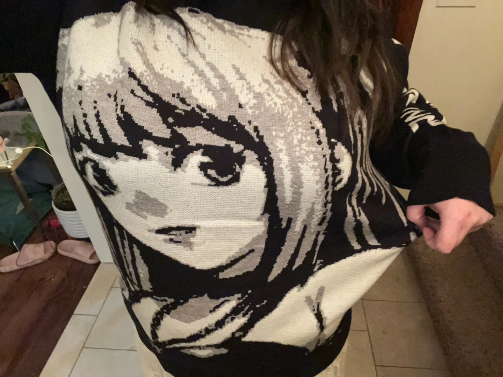 This is the actual knitted sweater, SO SOFT and stretchy. I’m in love!! I’m a U.S. size 18 and it’s oversized on me
